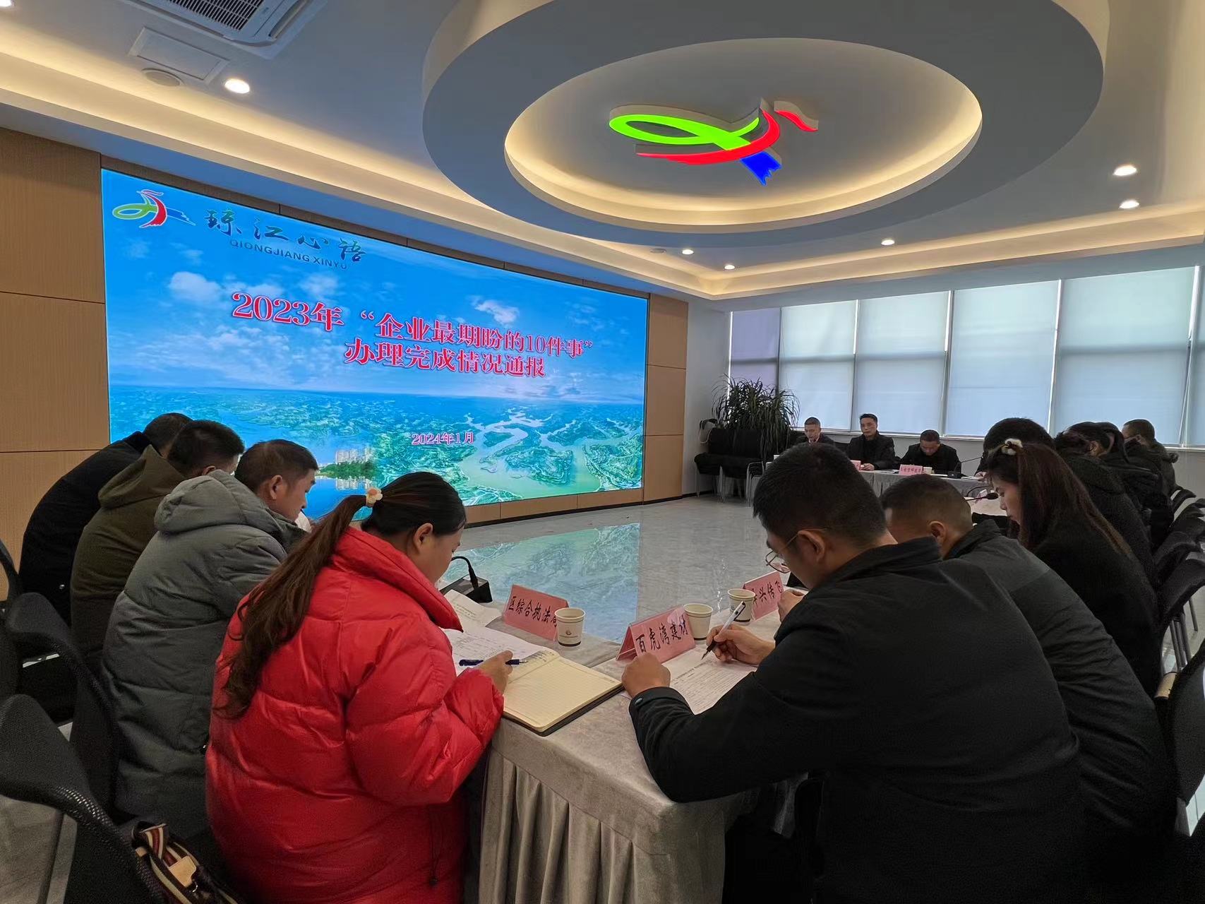 1月18日,安居区召开“企业最期盼的10件事”暨“琼江心语”主题活动年度总结会,向企业代表通报2023年办理完成情况并就办理成效进行测评,持续打造“门槛低于周边,服务高于周边的营商环境”新高地。