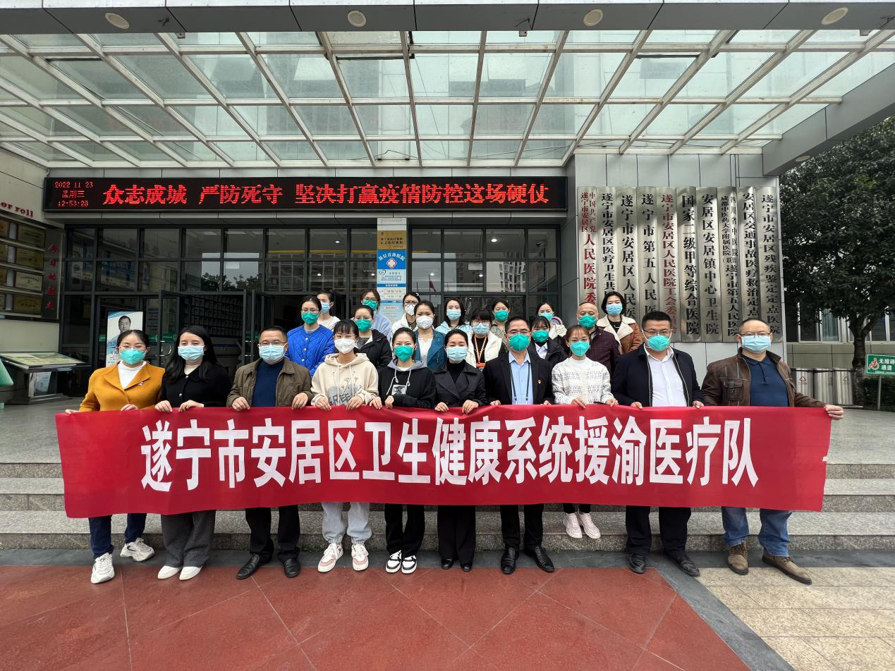 接到通知后,各单位派遣17人业务能力佳,感控意识强的人员,具有丰富战“疫”经验的同志前往。医疗队员分别来自安居区人民医院、区妇计中心、拦江镇中心卫生院、西眉镇中心卫生院、三家镇中心卫生院、白马镇中心卫生院、横山镇中心卫生院、东禅镇中心卫生院。