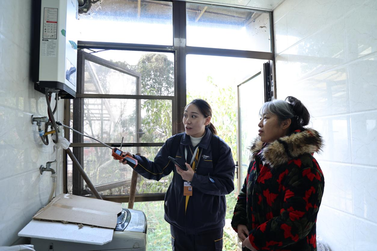 在检查中,针对发现用户存在热水器、灶具等超过使用年限,热水器无烟道以及烟道安装不规范,以及未使用燃气专用软管等问题,安检人员立即提出整改意见或当场帮助整改。