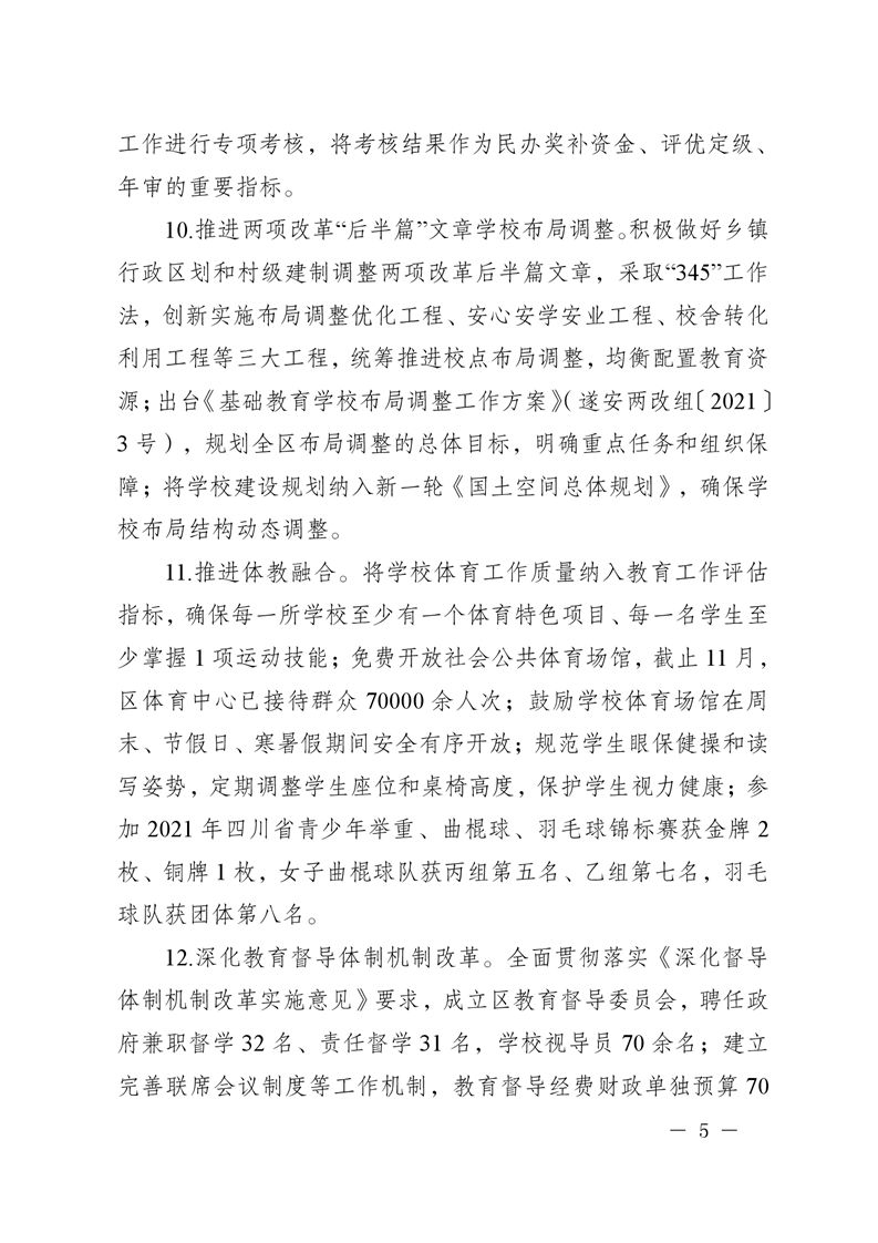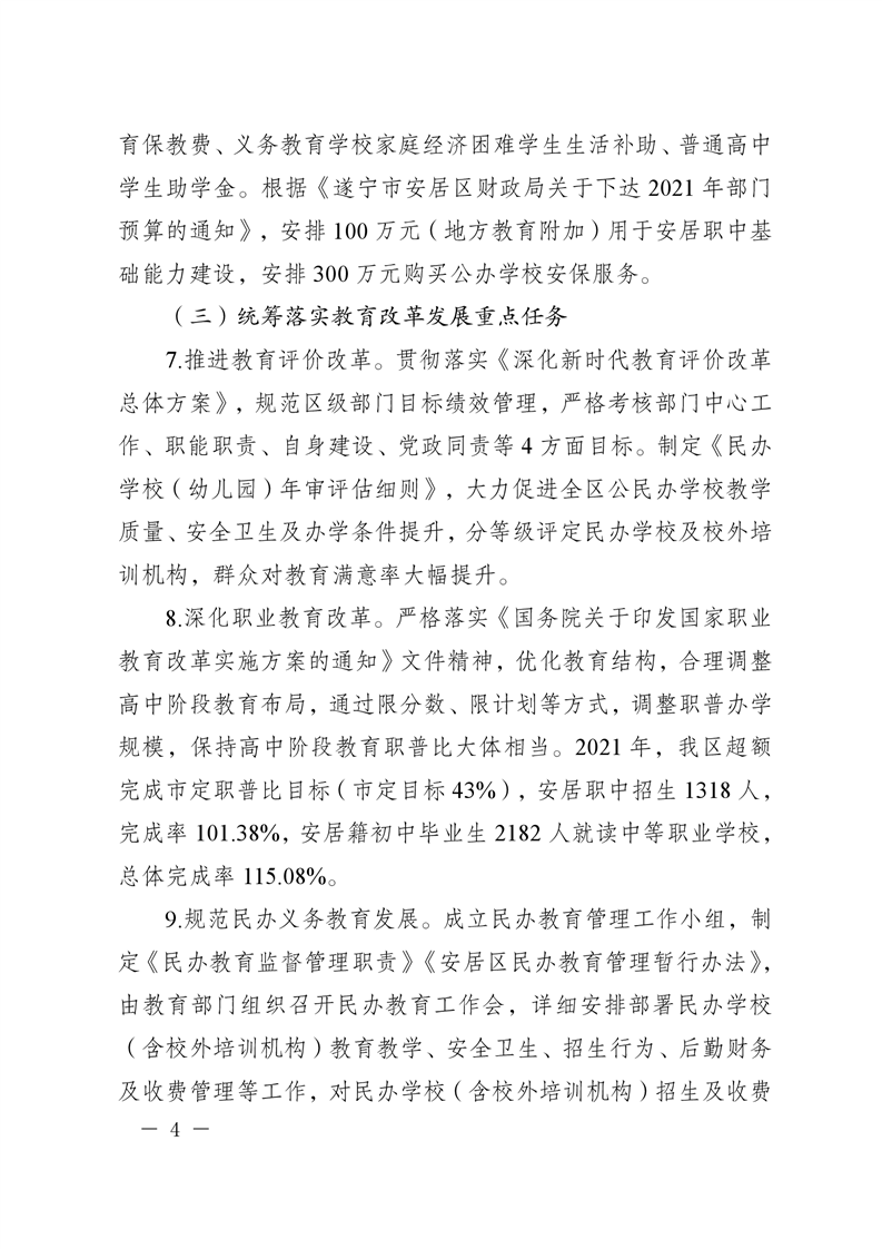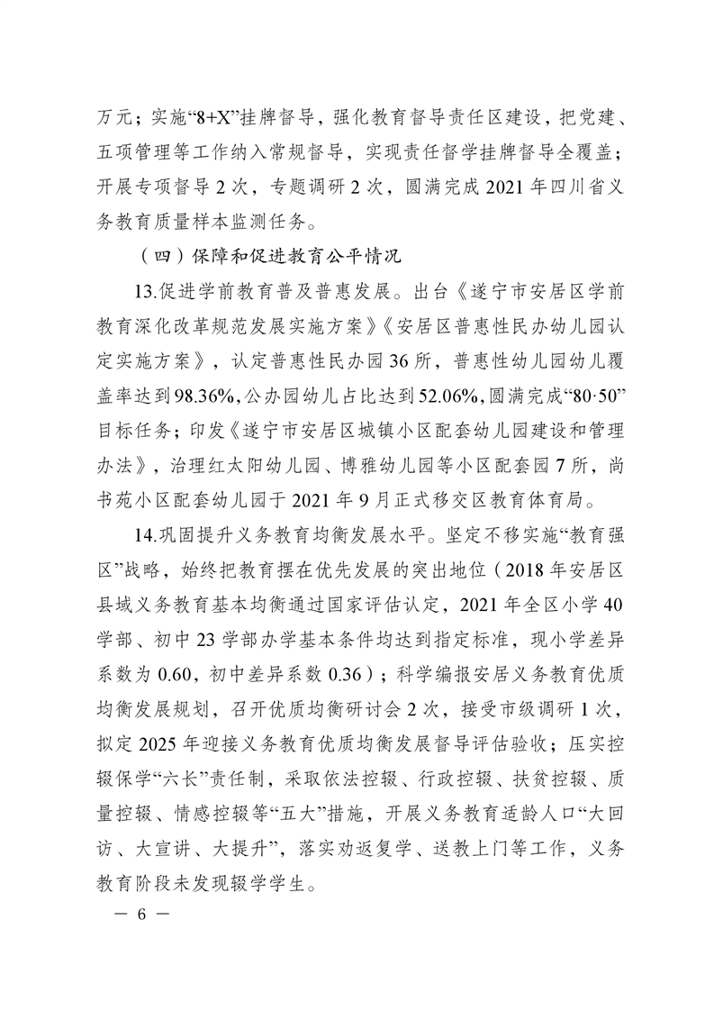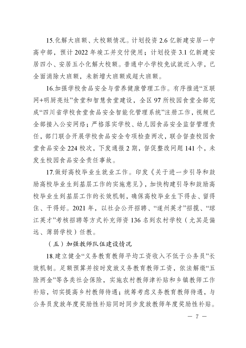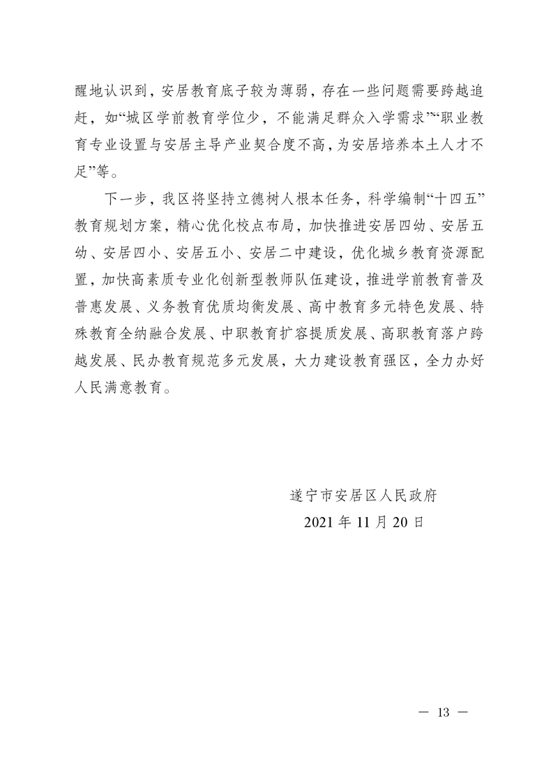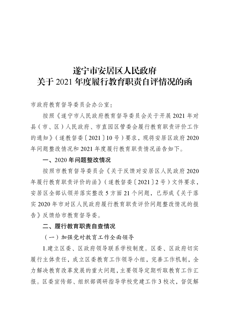 遂宁市安居区人民政府关于2021年度履行教育职责自评情况的函