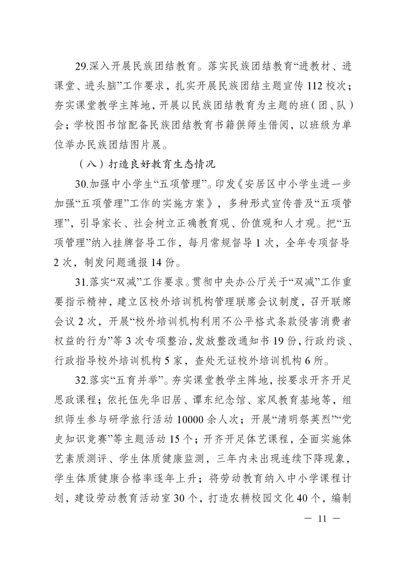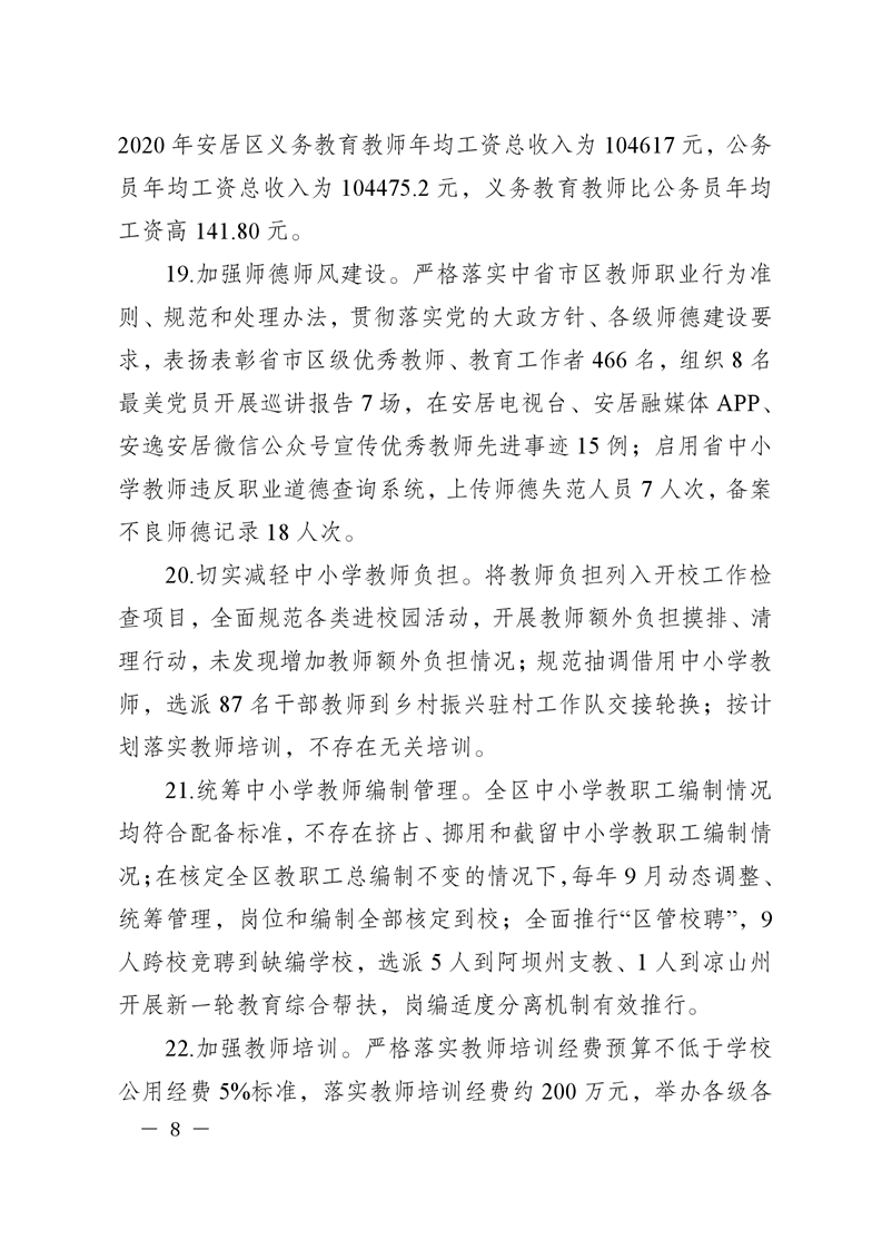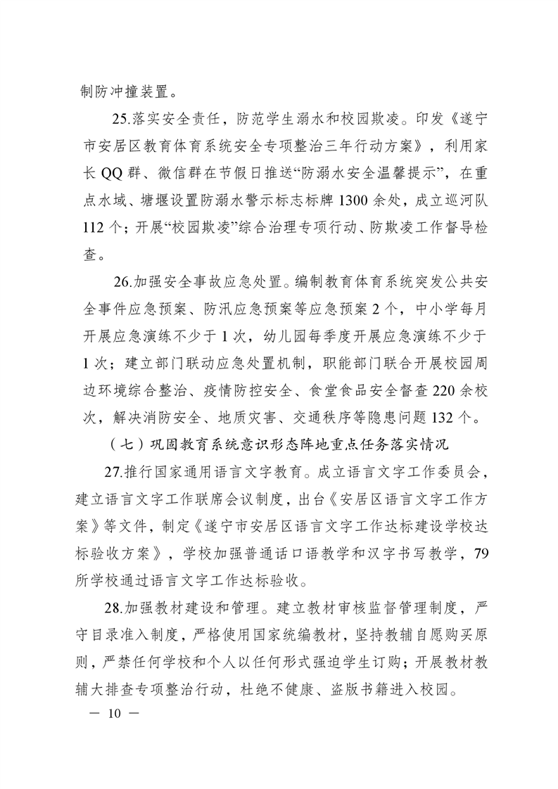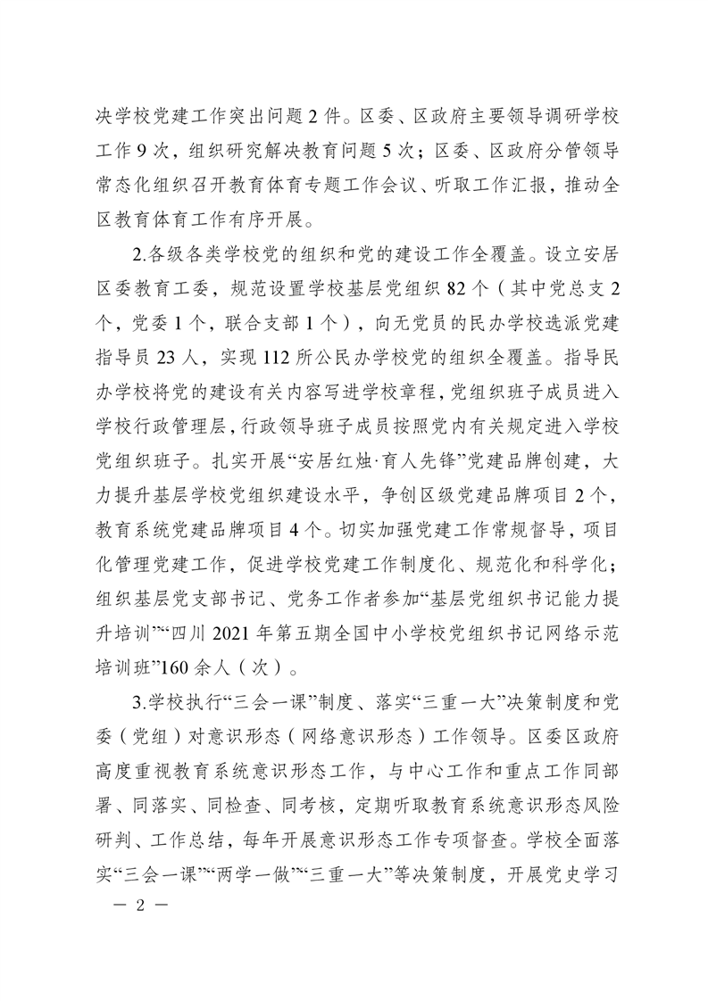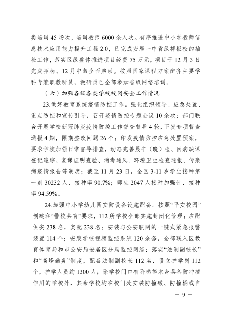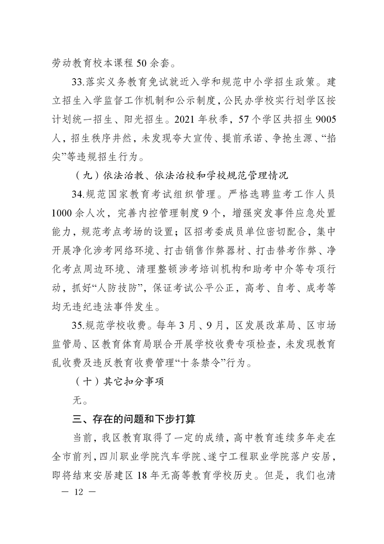 遂宁市安居区人民政府关于2021年度履行教育职责自评情况的函