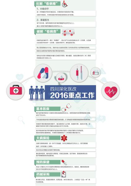 记者从省政府获悉,《四川省深化医药卫生体制改革2016年重点工作任务》(以下简称《工作任务》)已经出台。其中,与市民息息相关的看病、求医、买药、报销等问题,都是今年四川医改的重点工作。
