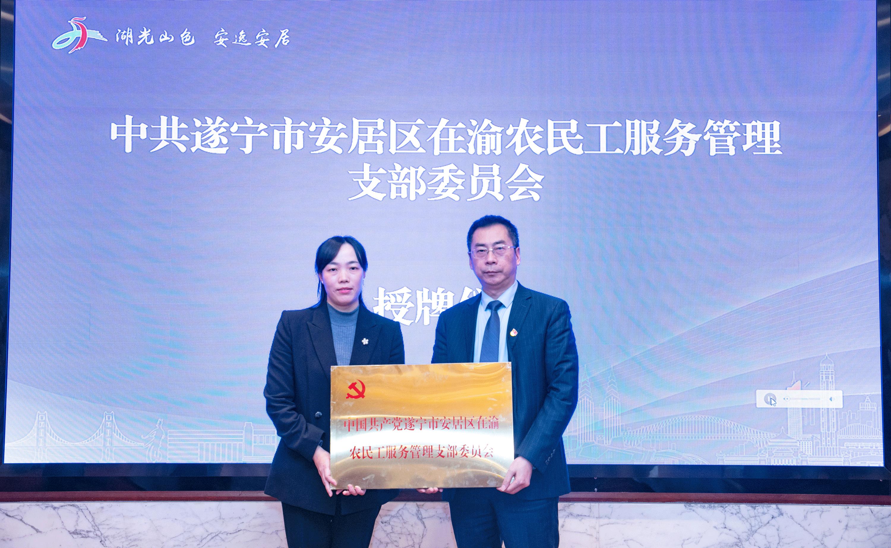 近日,安居区在重庆农民工服务工作站揭牌仪式在重庆举行。这是安居区建立的第6家驻外农民工服务工作站,也标志着1万多名安居籍农民工在重庆有了“代言人”和“娘家人”。副区长罗杨出席仪式。