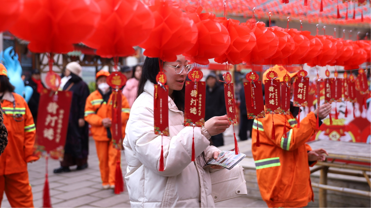 节日期间的海龙凯歌农文旅园区,处处洋溢着喜庆氛围,红灯笼高高挂起,游园内容丰富多样,猜灯谜、“投”元宵、“夹”元宵……游园活动中,最受欢迎的项目莫过于传统的做元宵了,游客们亲手制作元宵,揉面、包馅、搓圆,每一个步骤都充满了乐趣。