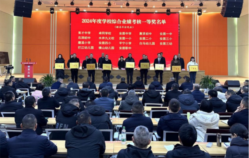 会议表彰了2024年度学校业绩考核先进集体,学校党组织书记作了2024年度党建述职,校(园)长作了2024年度述责述廉;局领导班子成员分别就各自分管领域的重点工作、中心工作进行了安排部署。