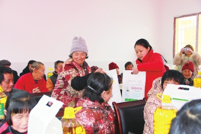1月18日下午,群众服务中心为了让村民们过一个快乐祥和的春节,区商务局邀请爱心企业——中国邮政集团遂宁市安居区分公司,来到安居区横山镇方园村开展春节慰问活动,给村民们带去了40套粮油,每套分别包含10斤油和10斤米,给村民送去了节日的问候和新春的祝福。现场慰问活动结束后,区商务局还到村民家中开展了以购助扶活动,据统计,当日的以购助扶活动,干部职工购买贫困户的农产品达到2000余元。图为慰问物资发放现场