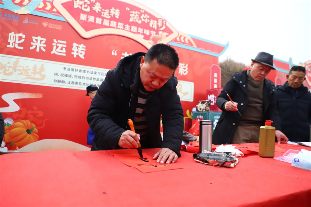 春节将至,年味渐浓。1月19日,“‘蛇’来运转 ‘蔬’你精彩”聚贤首届蔬菜主题年味节在聚贤镇和平村举行。此次活动以蔬菜为核心元素,融合传统文化与现代农业,为游客带来了别样的节日体验。