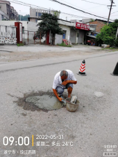2022年5月30日下午,区综合执法局对城区市政设施进行巡查,发现琼江西路道路破损严重,凹凸不平,存在严重的安全隐患。为确保行人安畅出行,5月31日区综合执法局对琼江西路破损路面开展专项修补整治工作,同时养护作业期间,对沿线行人出行带来不便做好解释工作。该项工作于6月7日修补完成。下一步,区综合执法局将加强道路巡查,发现问题及时处置,为广大市民提供优质安全的城市道路。