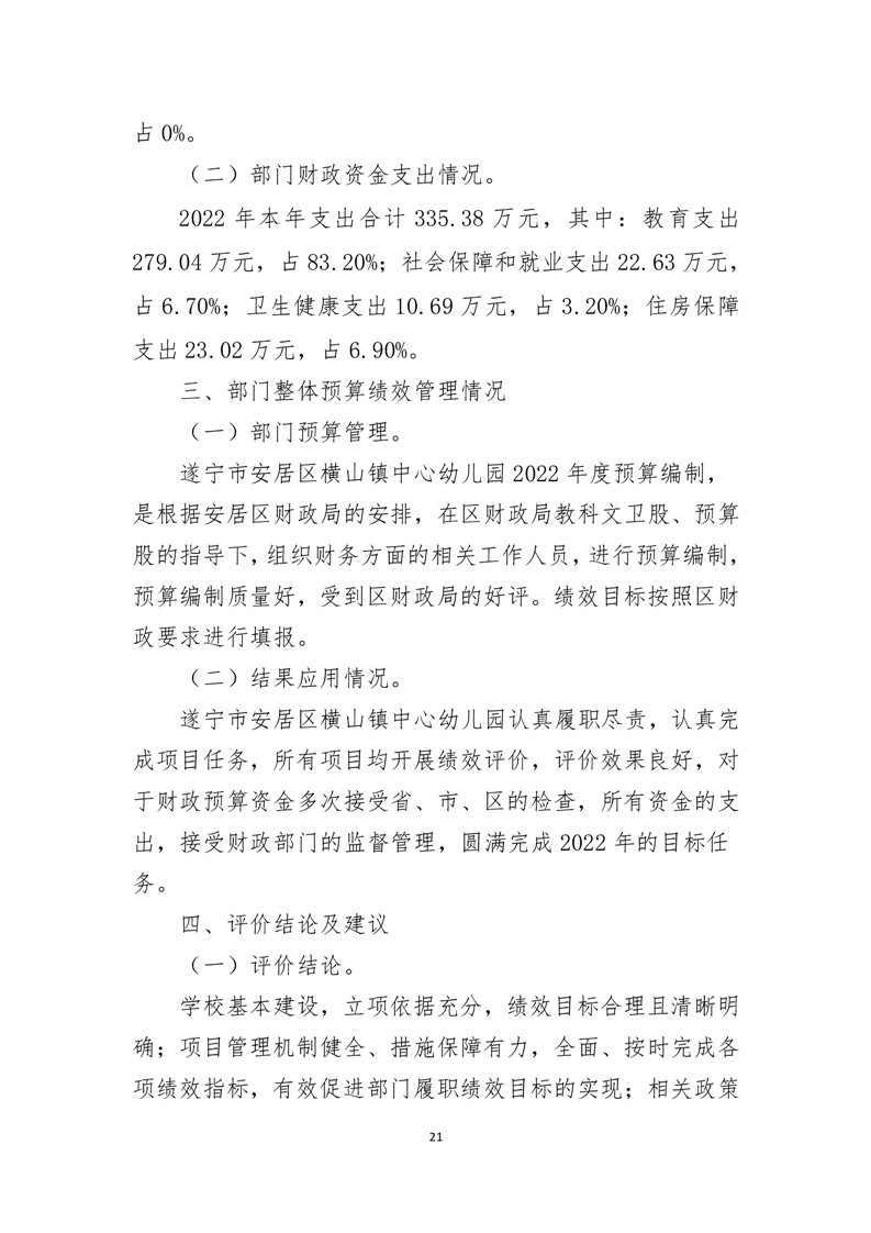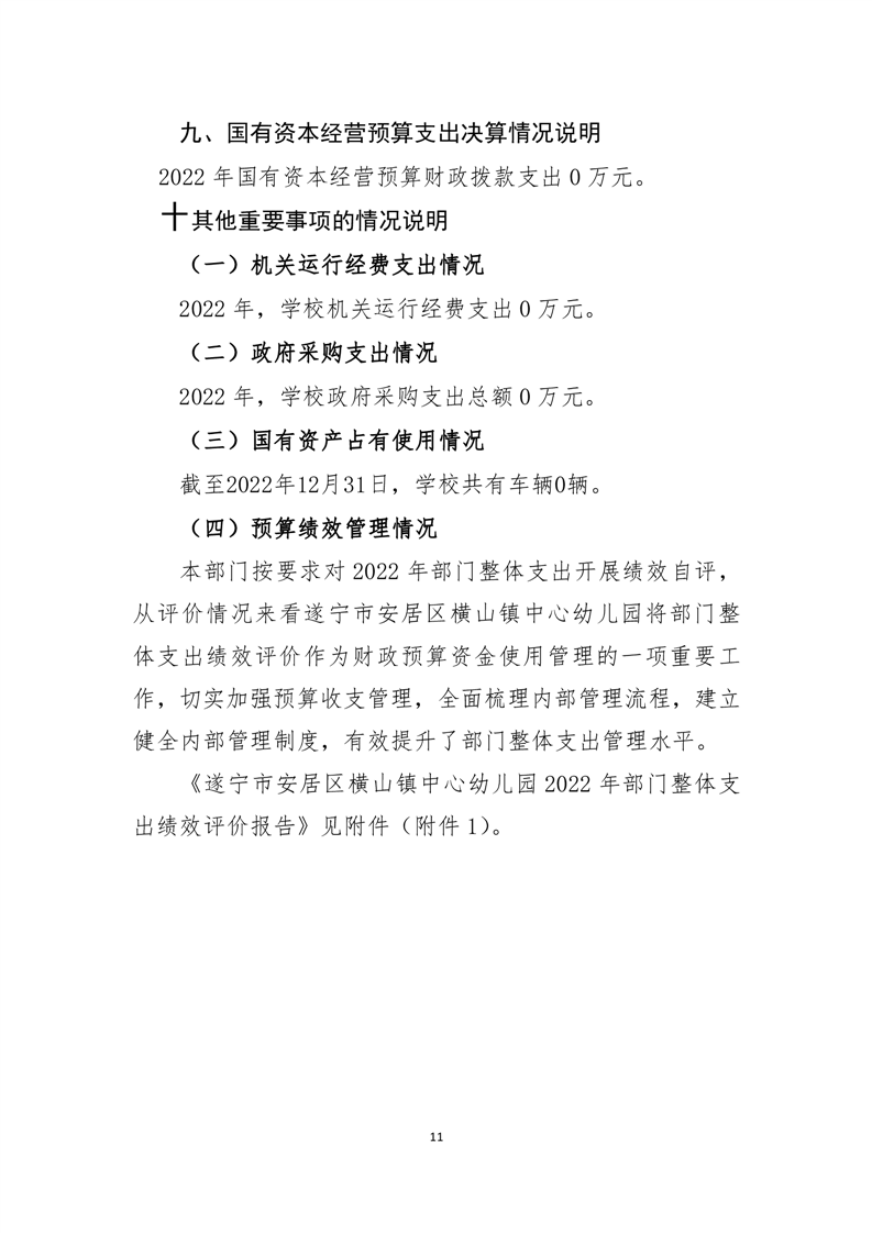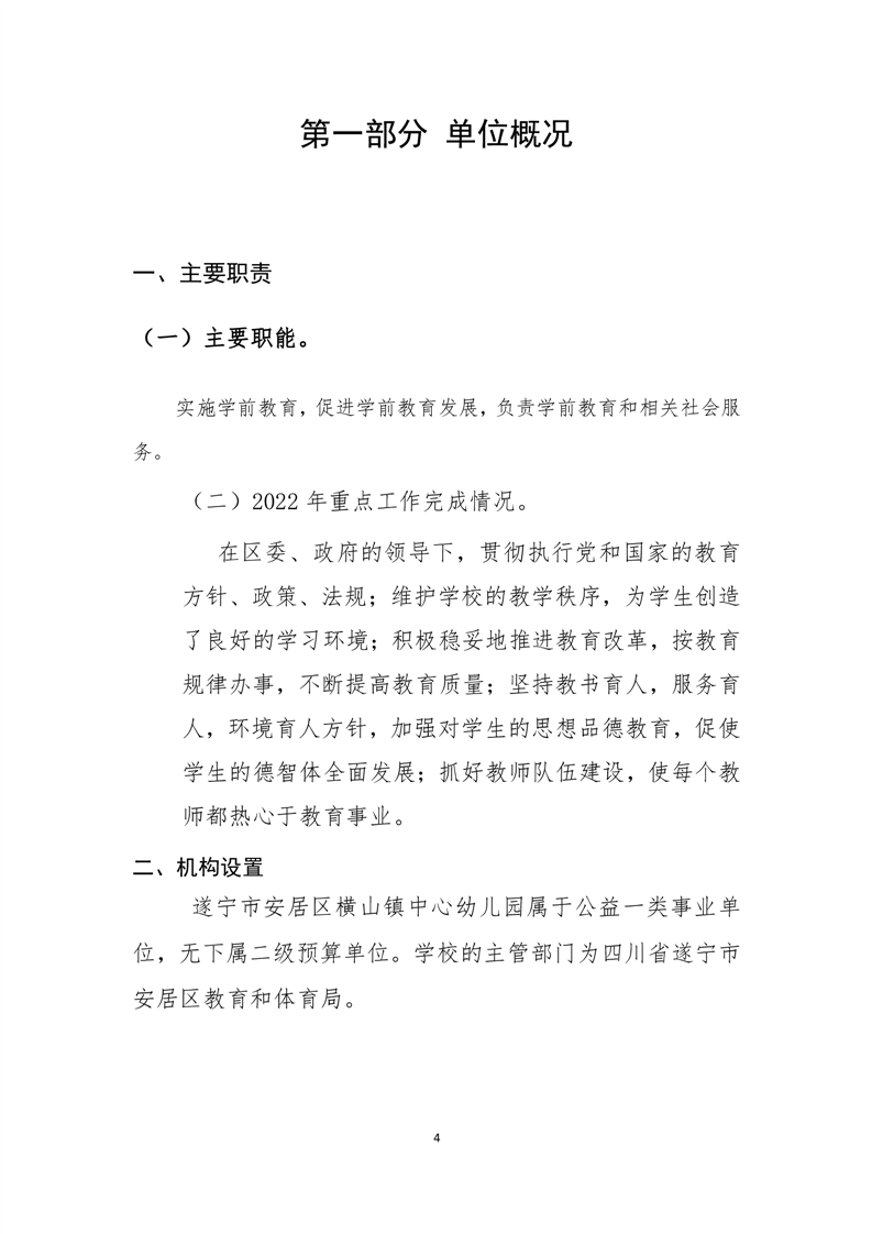 遂宁市安居区横山镇中心幼儿园2022年单位决算