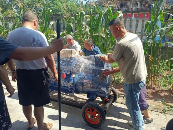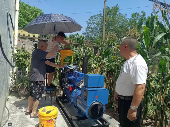 在大家的通力协作下,大家用人力将发电机组成功推到指定地点。“在这样炎热的天气下出工,不到一分钟就汗流浃背了,可是一想到是为了保障敬老院内的用电,还是可以坚持下来”,工作人员笑着说道。见状,甚至有身体硬朗的老年人加入了推车的队伍中。