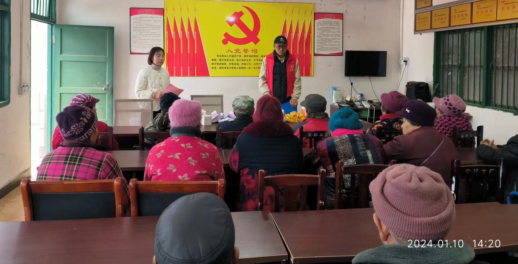 活动中猛虎村的村干部向在场老人宣传独居老人相关生活常识与安全常识,为他们发放生活物资,确保老人温暖过冬,不断提升猛虎村老人的幸福感、获得感、安全感。
