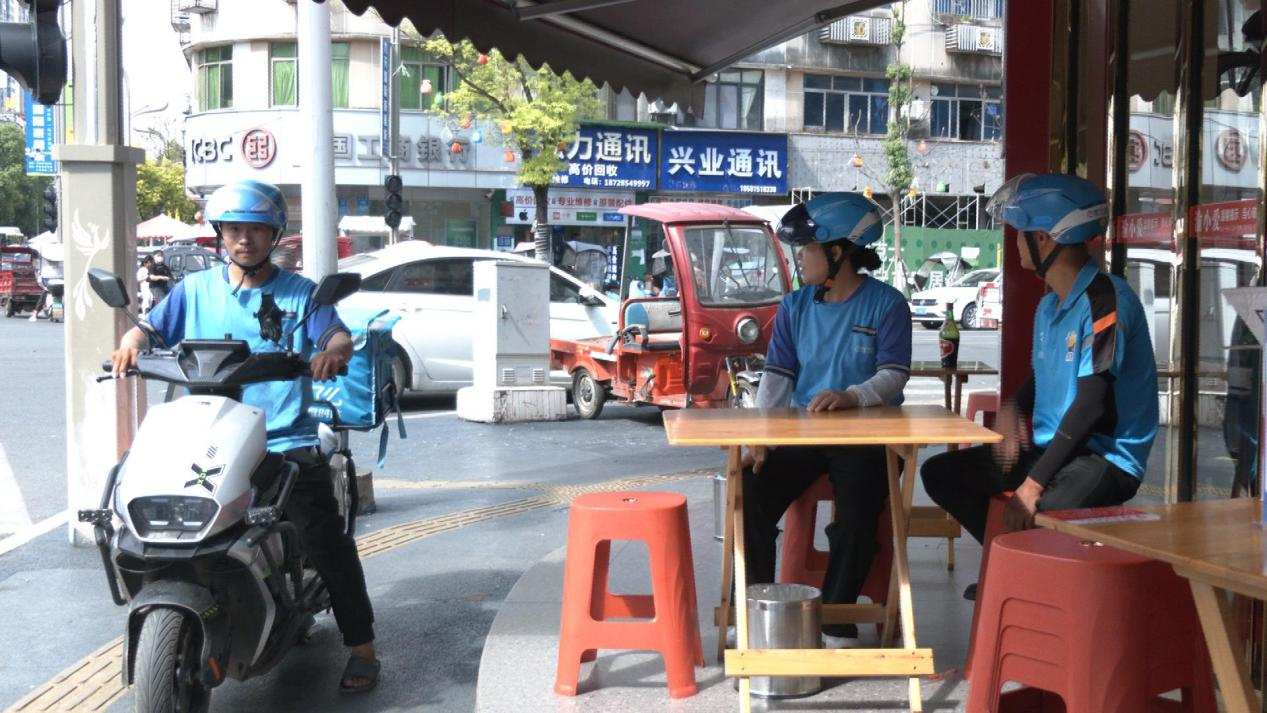 “现在在餐馆附近就有工会驿站,取餐方便,还能随时进来喝口水、歇口气,心里特别舒心。”位于兴贸东路的渝小爱面馆,这里还是工会设立的户外劳动者临时驿站,外卖员胡大伍一边拧开驿站的提供的矿泉水,一边向记者感慨。常年奔波在送餐路上的他,以往常为休息、喝水发愁,如今工会驿站就在取餐点附近,“解决了我们的大问题”。