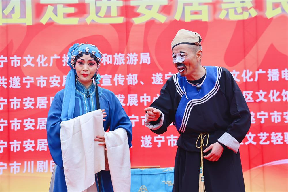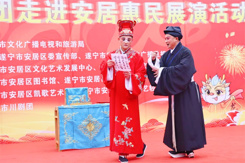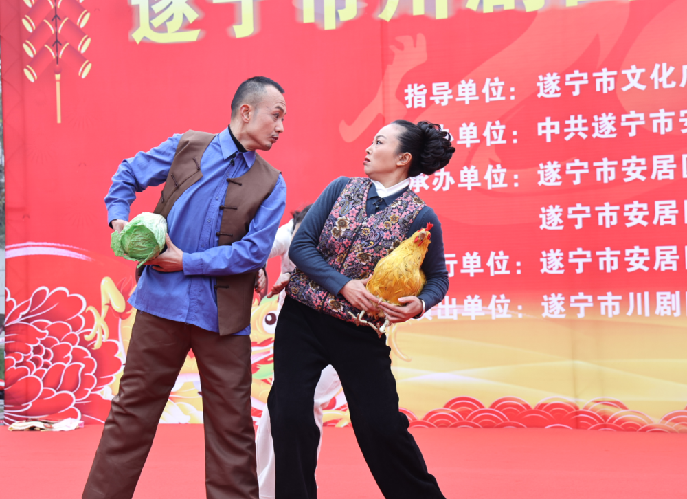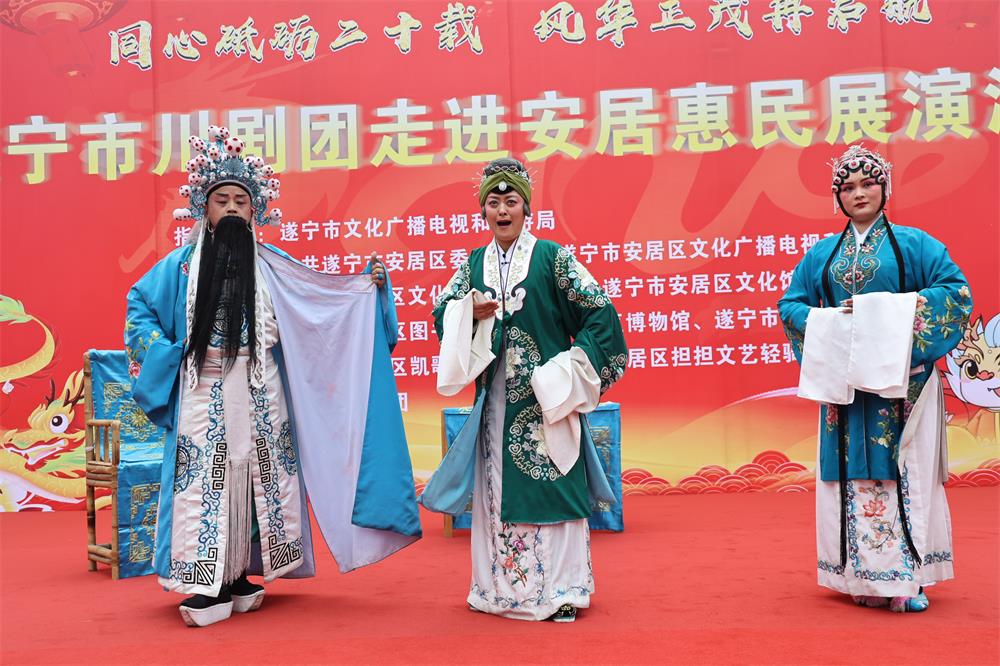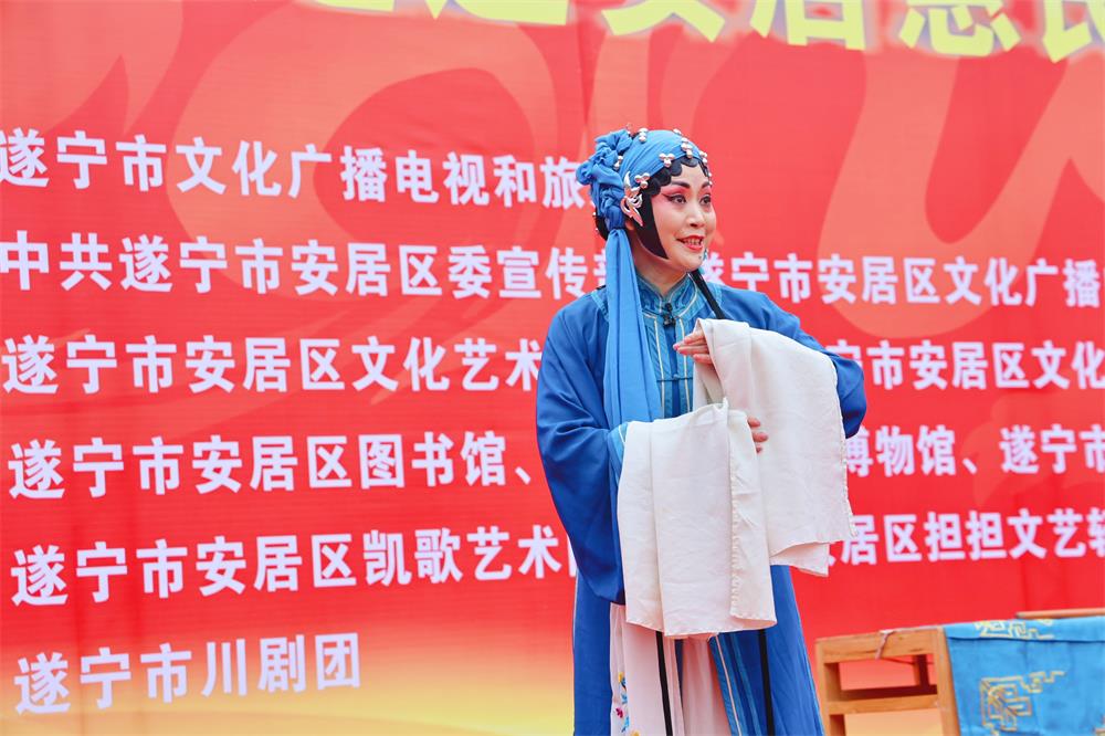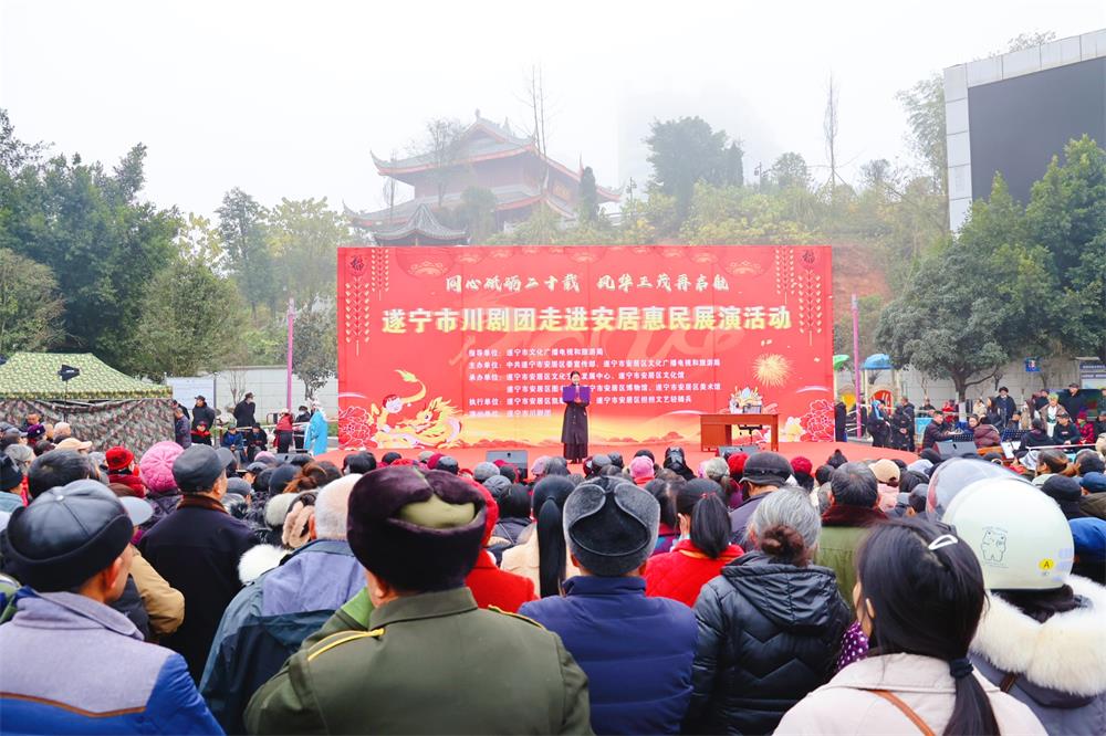 “今天,我们遂宁市川剧团走进安居,精心准备了多台群众喜闻乐见的传统剧目,希望给我们安居的戏迷朋友带来一场盛宴。”遂宁市川剧团业务副团长徐旭说。