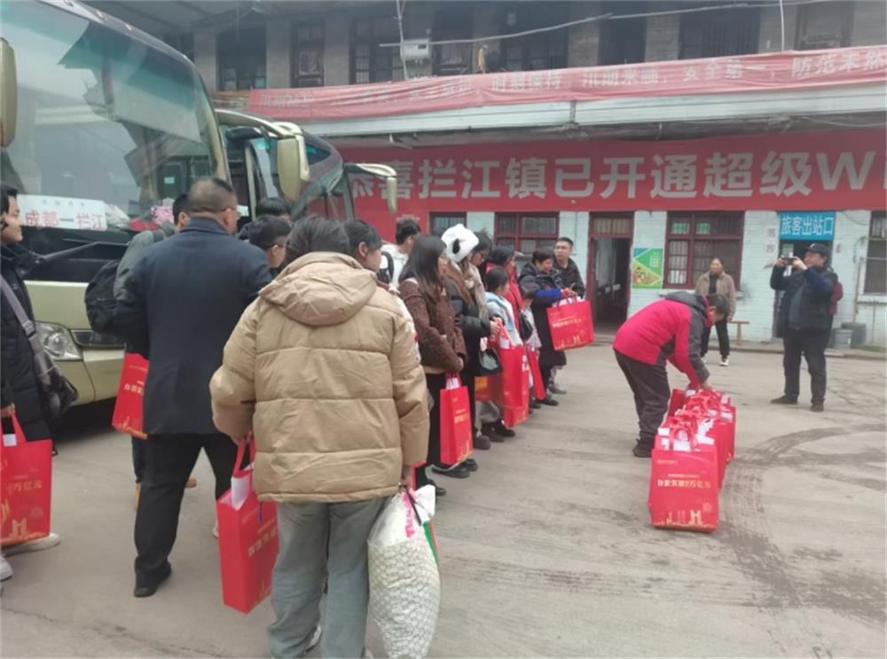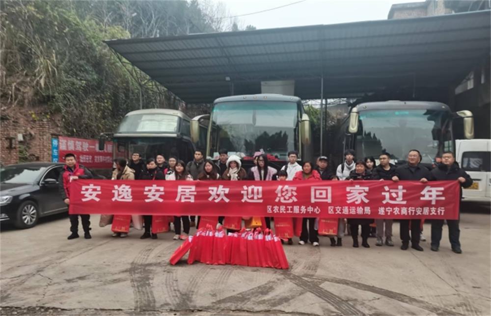 1月23日,区农民工服务中心联合区交运局、遂宁农商银行安居支行组成慰问组,到拦江镇长途汽车站,为回家过年的返乡务工人员送上节日礼物和祝福,传递家乡人民对返乡人员的浓浓爱意与温暖。