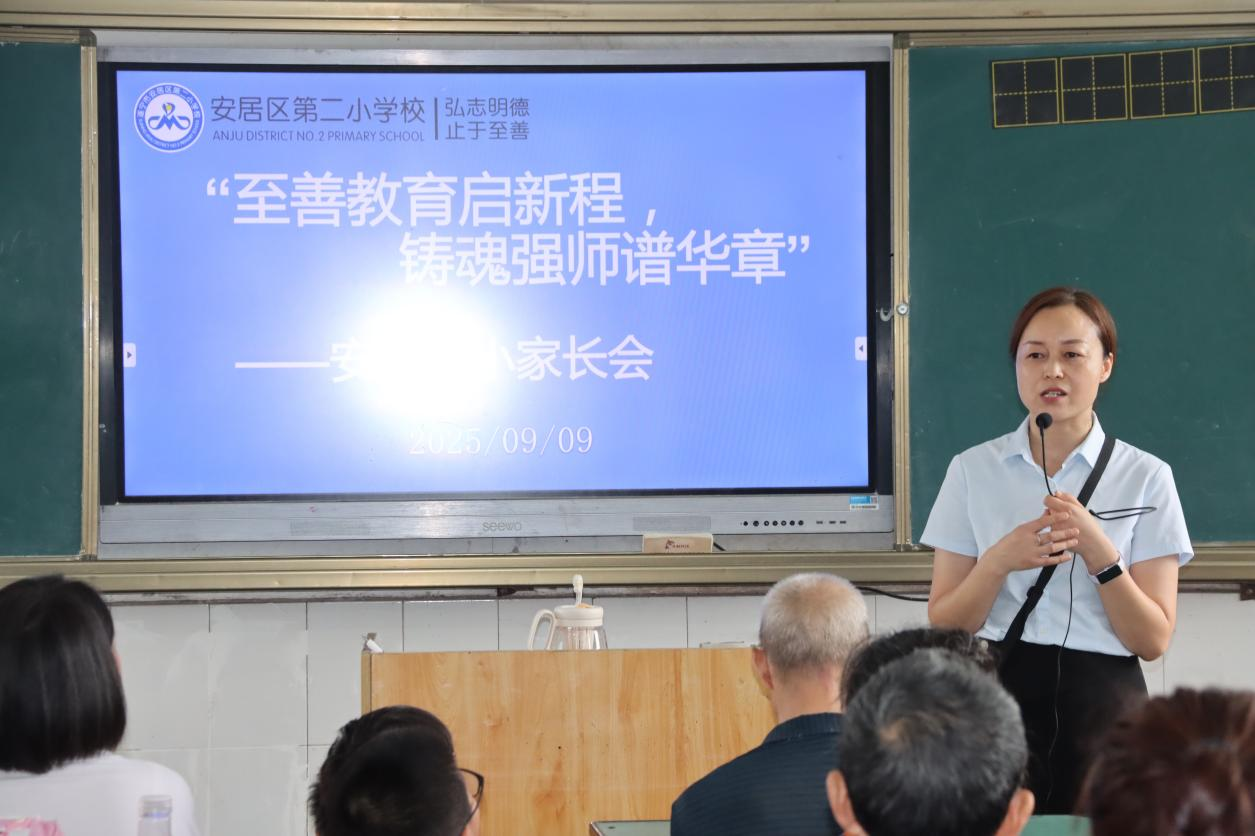 9月9日上午,安居二小举行2025年“至善教育启新程,铸魂强师谱华章”秋季学期开学暨尊师典礼,全体师生及家长代表齐聚,开启新学期。