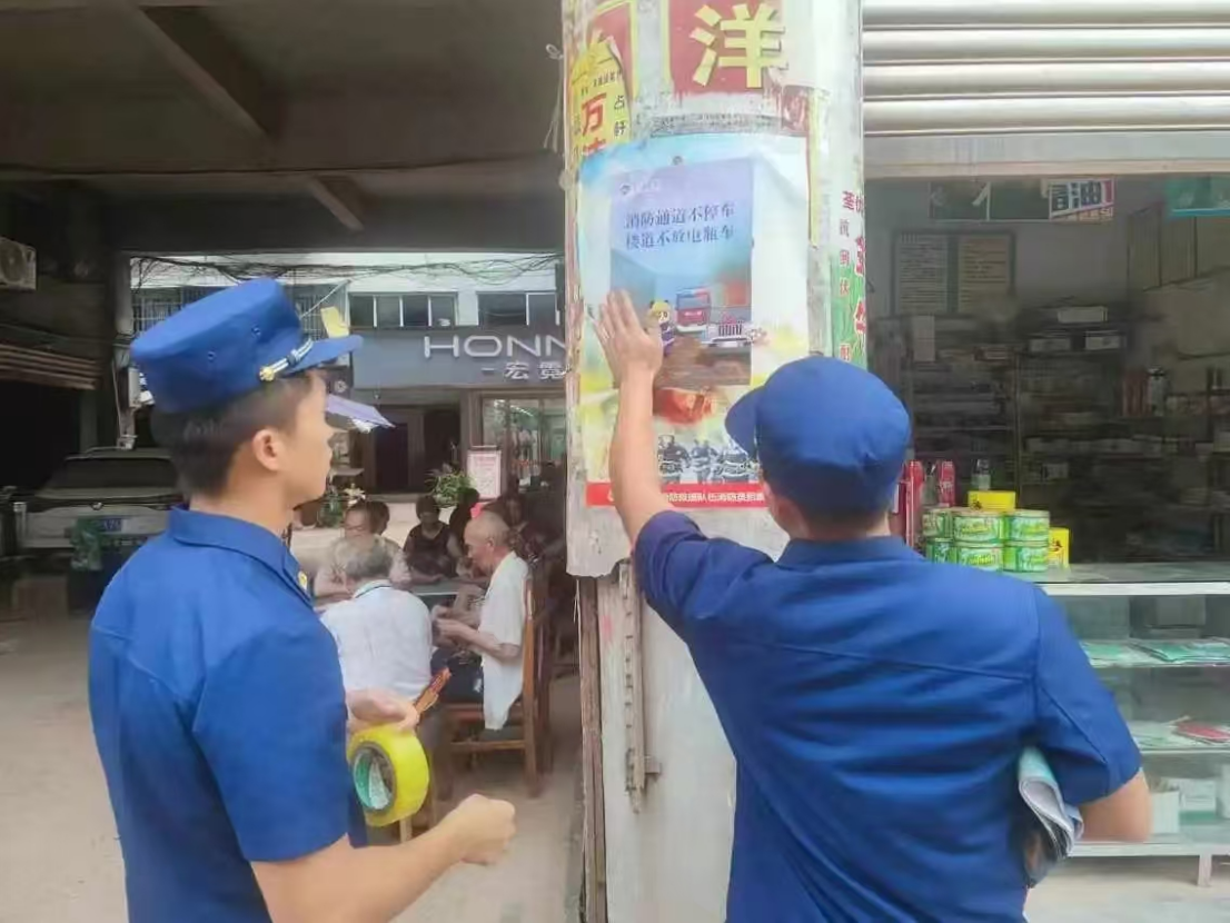 来到农贸市场、步行商业街、地下商场等人员密集多业态混合生产经营场所,工作人员在醒目区域张贴消防安全宣传单,并向经营主体责任人宣讲消防安全责任,督促其履职尽责。