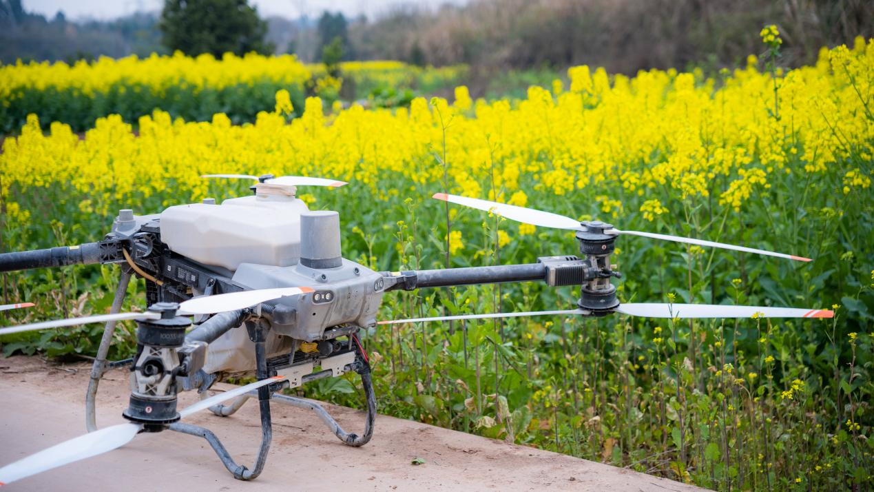 时值油菜花盛开的黄金季节,也是油菜病虫害防治的关键时期。为确保全镇7600亩油菜稳产增收,横山镇依托现代化农业技术,采用无人机统防统治,打响了一场高效精准的油菜“健康保卫战”。