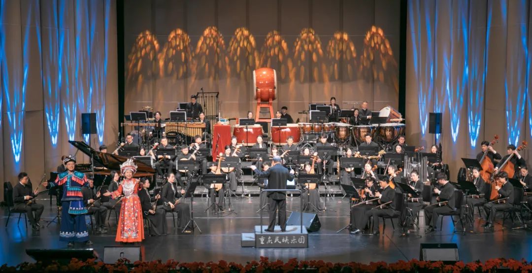 音乐会以武陵民歌、山歌、情歌、民族歌舞和国家级非遗音乐为素材,巧妙地融入当代多元作曲技法。作品以歌舞剧结构写作方式为框架渲染展开,仿佛为我们徐徐拉开了一幅关于渝东南的绚丽画卷。当那熟悉的《阿啦调》响起,木叶吹奏与乐队配合得相得益彰,您仿佛瞬间穿越到了酉阳的山水之间,土家儿女的质朴与热情扑面而来。而悠扬的苗族民歌《娇阿依》,又以其独特的韵味,向您诉说着苗乡的动人故事。