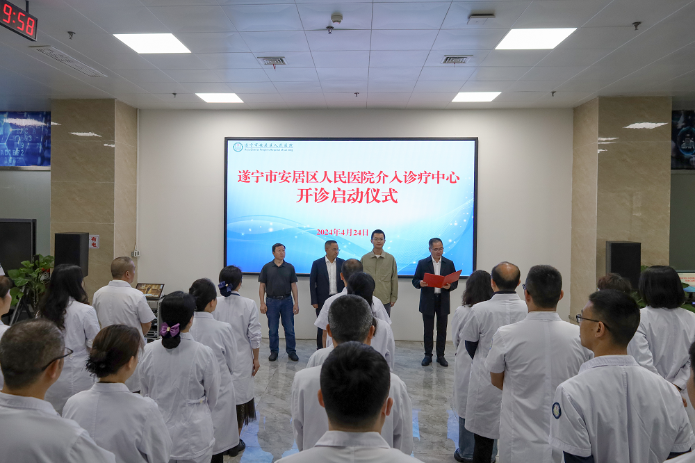 4月24日,区人民医院举行介入诊疗中心启动仪式,进一步提升医疗服务水平,切实提高心血管疾病病人的救治效果与安居区重大疾病救治水平,不断推动医院介入诊疗水平迈上新台阶。