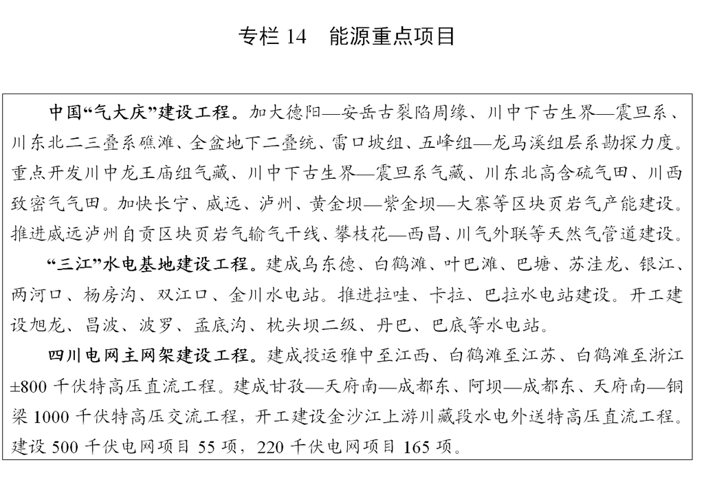 提高储气规模和应急调峰能力,重点推进牟家坪、老翁场、中坝、沈公山、黄家场等地下储气库建设,建成国家西南天然气储备基地。规划建设成品油入川管道和国家航油储备基地,加强成品油供应保障。完善电力调峰机制,科学布局天然气调峰电站。继续做好规划内核电厂址保护。推进煤矿现代化改造,建设煤炭储备基地,健全煤炭保障体系。