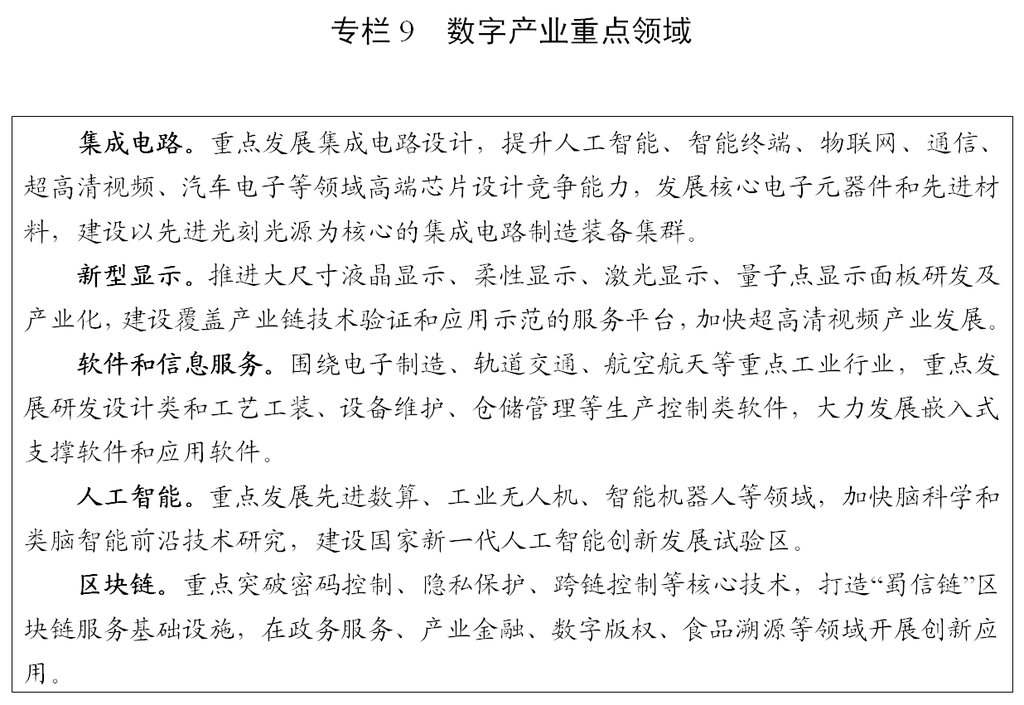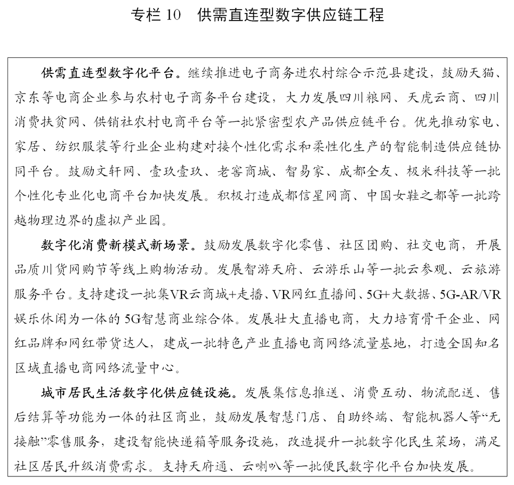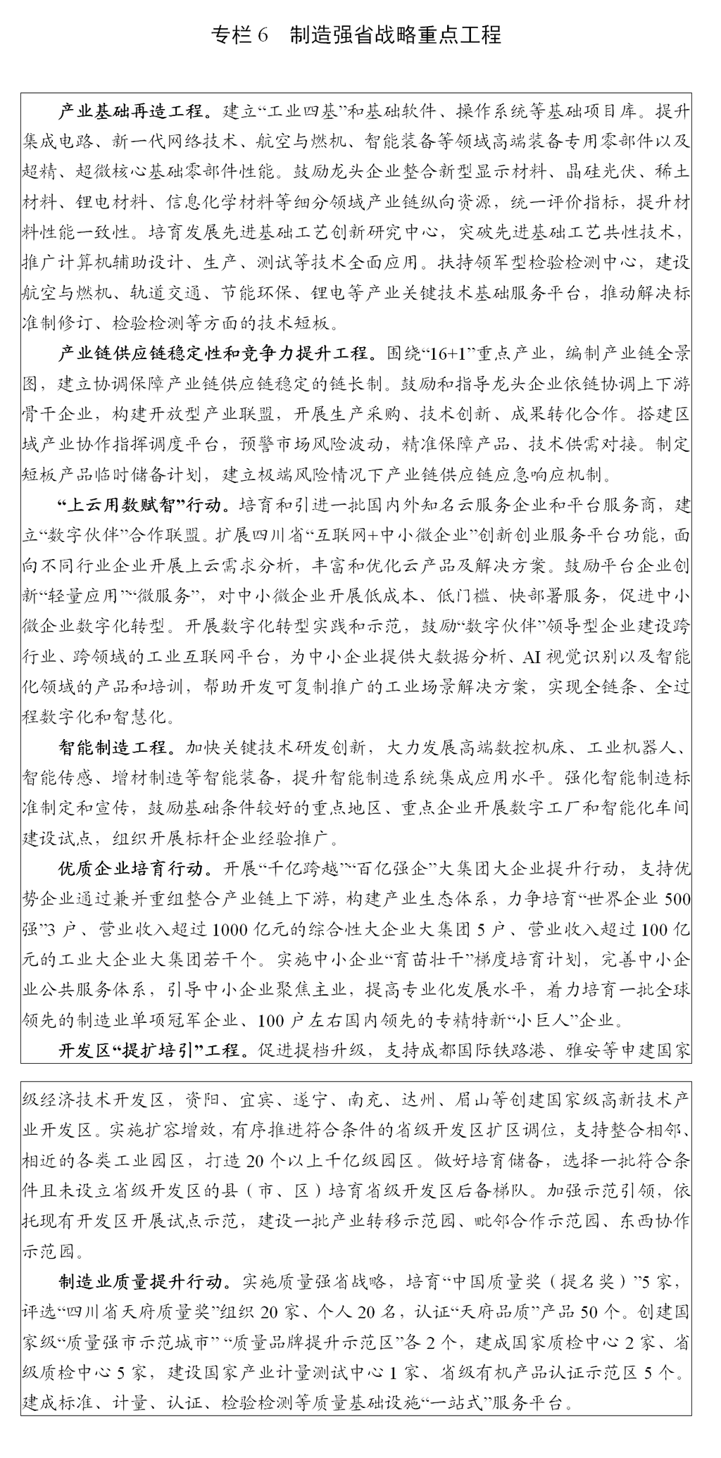 推动出版发行、广播影视、演艺文博、创意设计、文化装备等传统文化产业转型升级,加快发展网络视听、高新视频、电子竞技等新兴业态。实施省属国有文化企业振兴计划、市(州)骨干文化企业培育计划、重点民营文化企业扶持计划,开展文化产业领军企业培育工程。打造国家文化和科技融合示范基地、国家广播电视和网络视听产业基地,推动彩灯展览、川版图书、动漫游戏、曲艺影视等文化出口提质增量。