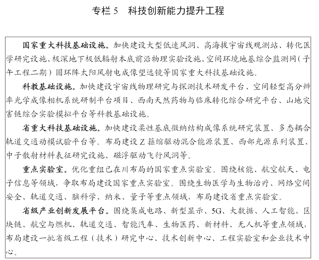 “十三五”时期,是四川决战脱贫攻坚、决胜全面小康取得决定性成就的五年,是全面践行新发展理念、推动治蜀兴川再上新台阶具有里程碑意义的五年。省委、省政府团结带领全省各族人民,坚定践行习近平新时代中国特色社会主义思想,全面落实党中央、国务院各项决策部署,积极应对发展环境复杂变化、新冠肺炎疫情严重冲击等风险挑战,开创了转型发展、创新发展、跨越发展的新局面。经济实力迈上新台阶,提前实现地区生产总值、城乡居民人均可支配收入比2010年翻一番,“5+1”现代工业体系、“4+6”现代服务业体系、“10+3”现代农业体系发展壮大,经济高质量发展取得新成就。三大攻坚战纵深推进,脱贫攻坚取得决定性胜利,生态环境有效改善,防范化解重大风险取得积极成效。城乡区域发展更加协调,成渝地区双城经济圈建设开局良好,“一干多支”发展战略深入实施,新型城镇化水平持续提升,乡村振兴扎实推进,县域经济竞相发展。主要领域“四梁八柱”性改革进展顺利,供给侧结构性改革纵深拓展,要素市场化配置改革有力推进,全面创新改革试验系统开展,“放管服”改革持续深化。创新引领发展能力持续增强,创新资源加快集聚,科技成果加速转化。现代综合交通等基础设施建设全面提速,融入“一带一路”建设成果丰硕,“四向拓展、全域开放”新态势加快形成。民生福祉稳步增进,人民生活质量不断提升,新冠肺炎疫情防控取得重大成果。文化强省旅游强省建设融合推进,文化产业和文化事业持续繁荣发展。全面依法治省取得重大进展,民主法治建设迈出重大步伐,平安四川建设成效明显,社会保持和谐稳定。乡镇行政区划和村级建制调整改革顺利实施,城乡基层治理制度创新和能力建设全面加强。全面从严治党纵深推进,政治生态和发展环境持续优化。五年攻坚克难、砥砺奋进,“十三五”规划主要目标任务总体如期完成,全面建成小康社会胜利在望。