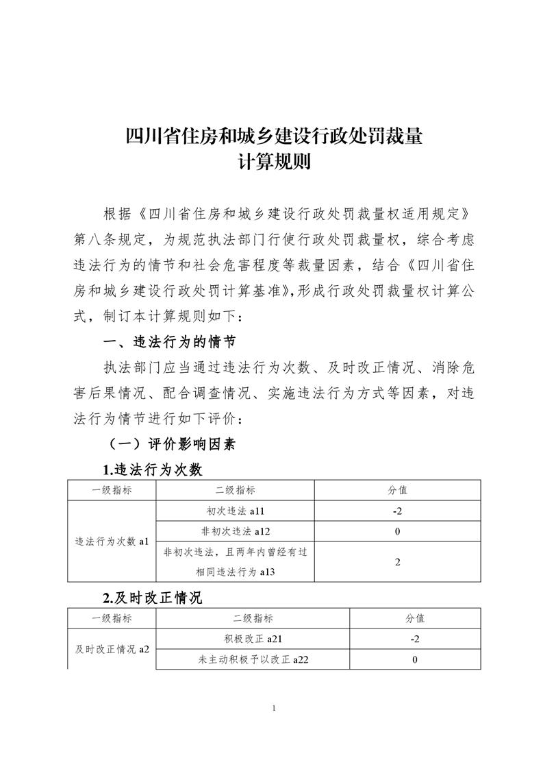 四川省住房和城乡建设行政处罚裁量计算规则