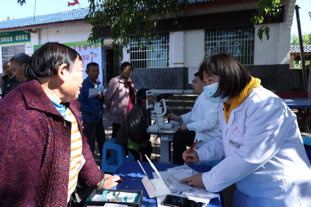 “大爷,你眼睛有点白内障,目前只是初发期,平时要注意对眼睛的保护。”义诊现场,专家们为村民提供眼科常见病筛查及听力筛查等免费的健康体检服务,并根据检查结果给出个性化的健康建议和注意事项,建立个人健康档案。