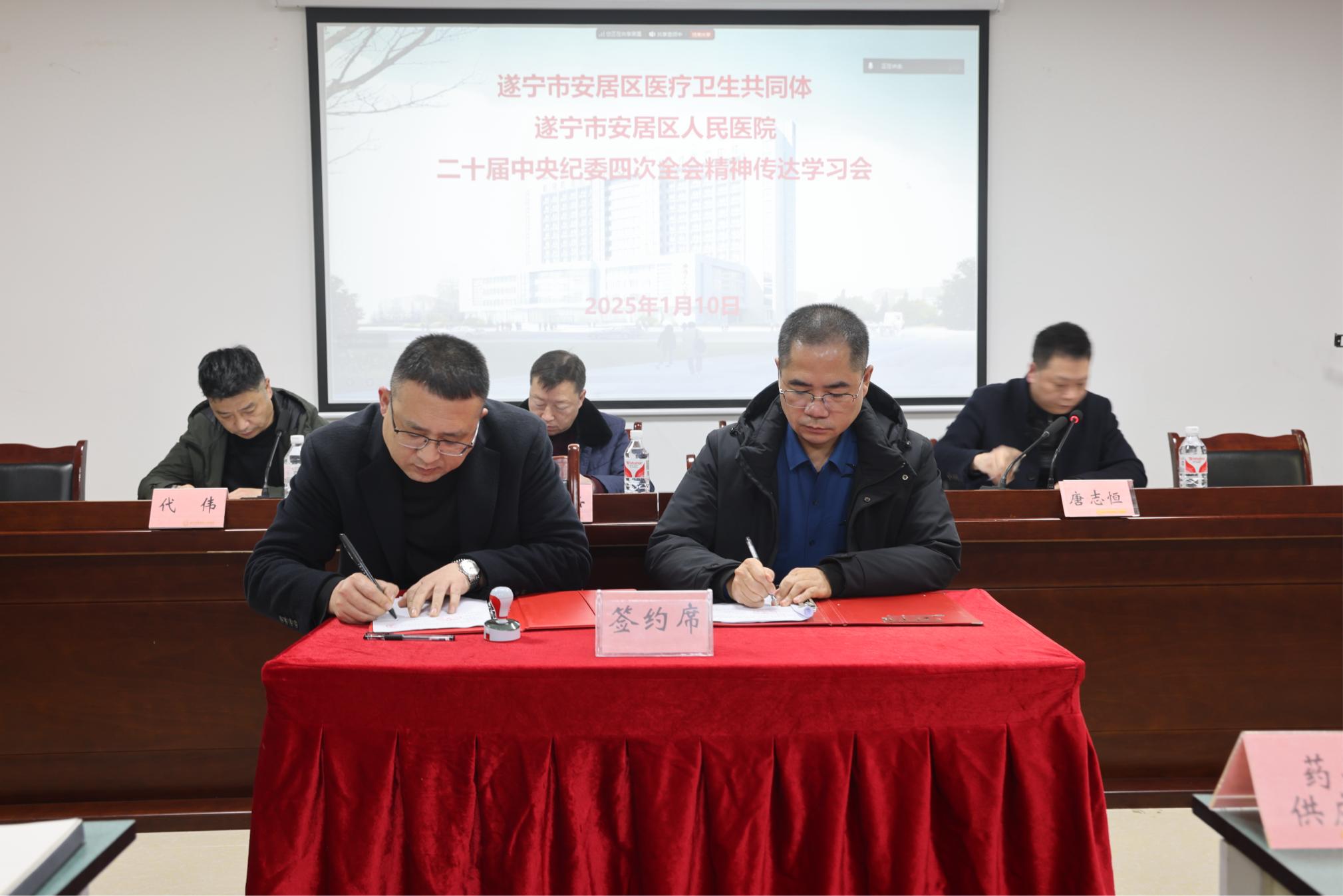 会上集中收看了《零容忍》第一集《不负十四亿》、《反腐不止于医院 行贿药企也难逃法网》警示教育片;通报了2024年合作供应商履约情况;安排了2025年党风廉政建设工作并作廉洁提醒集中谈话;区纪委监委驻医院纪检监察组简析了当前医疗卫生行业反腐态势并作了廉洁提醒;合作供应商代表作表态性发言并签订廉洁购销协议;重点岗位负责人代表作表态性发言并签订党风廉政建设、行业作风建设责任书。