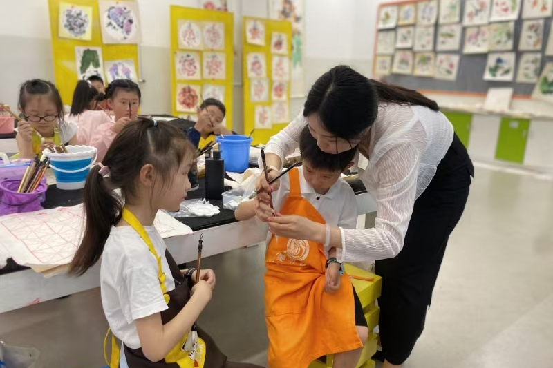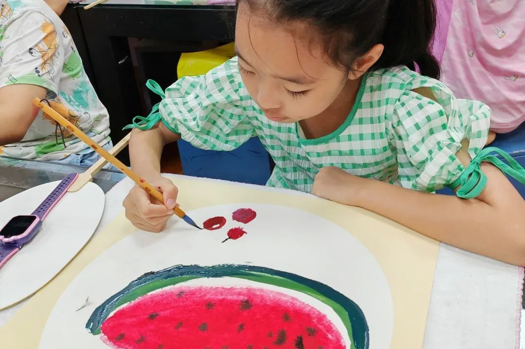 国画,浓墨淡彩勾勒诗意世界。国画班里,孩子们沉浸在传统文化的熏陶中,用笔墨展现出内心的宁静与深远。