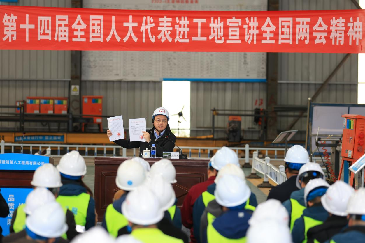 在一个多小时的宣讲中,唐利军讲得认真,大家听得专注,不时在笔记本上记录重点、要点。“唐代表从北京带回的好声音温暖有力,鼓舞了信心、增强了干劲。”中建八局成达万高速铁路工程部工作人员张恒瑞说,“作为一名刚刚毕业参加工作的新员工,能感受到国家对于我们青年未来的发展是有关注的,而且《政府工作报告中》的每一串数字相对于去年,我都能非常切实的感受到我们辛勤的工作最后都变成了祖国经济的腾飞。”