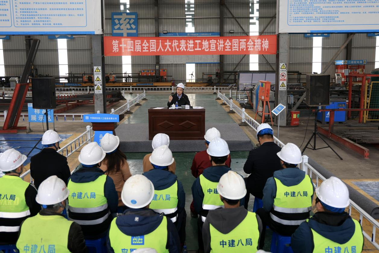 “这是我第三年参加全国人代会,也是第三次来到成达万高铁项目一线宣讲全会两会精神,感受颇深。”从两会会场到工地现场,唐利军结合自身参会感受,围绕科技创新、青年人才发展、民生保障等热点话题,将政策“大道理”转化为一线建设者和青年学生听得懂的“小故事”,并重点解读了国家推进重大工程、促进区域协调发展的部署,激励工友们在项目建设中勇担使命。