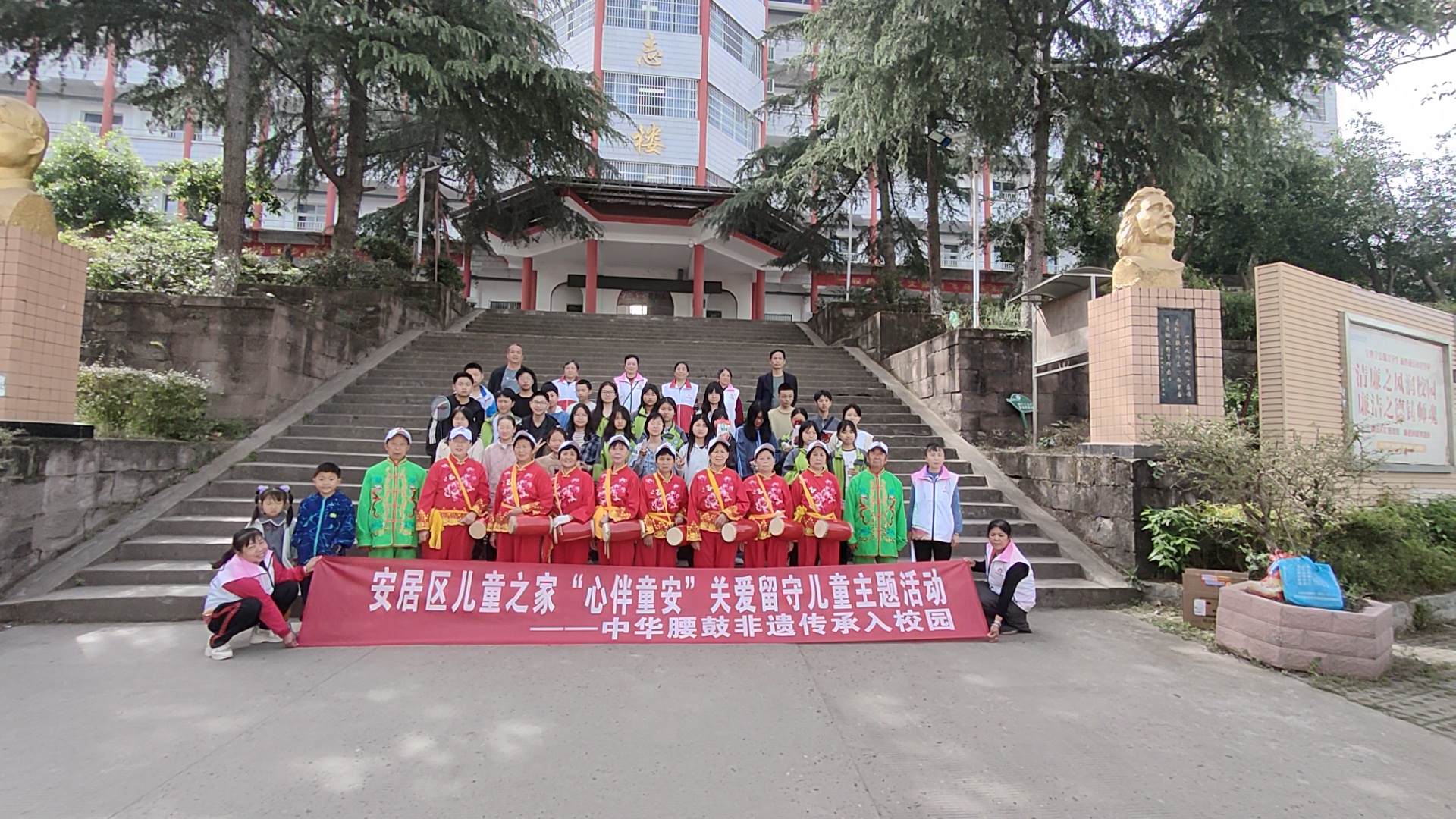 本次活动采取民众喜闻乐见的形式,组织社区工作人员、志愿者依托非遗传承腰鼓于学校进行文艺表演。演出现场,表演者气势如虹,学生们大声叫好,气氛热烈。在欢声笑语中,为留守儿童送去真挚的关爱与呵护,让他们感受到社会的温暖和关怀。