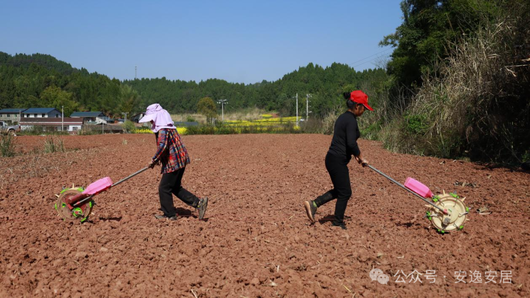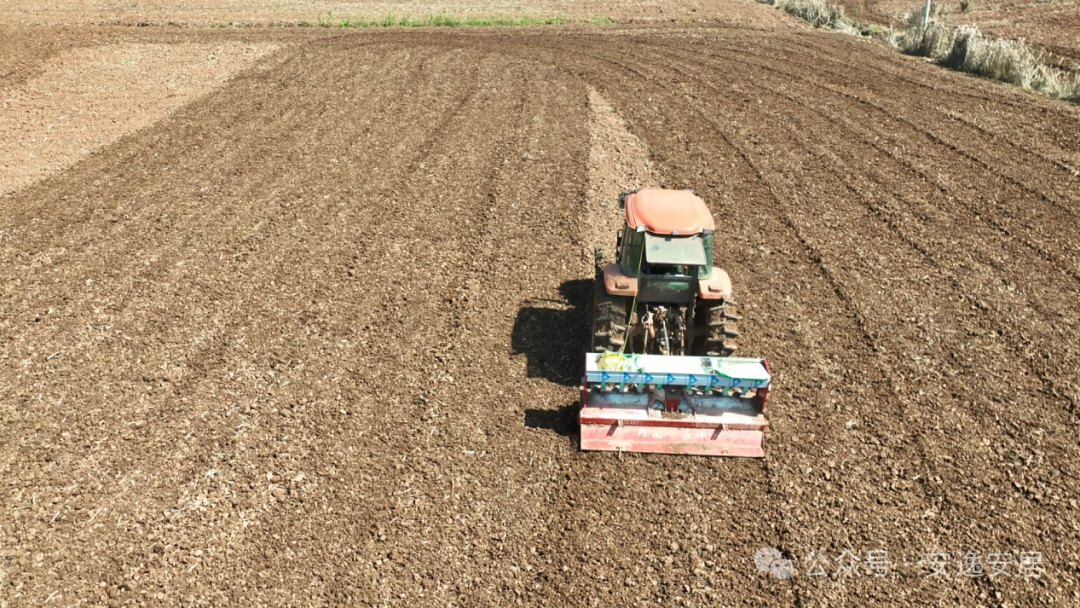 在西眉镇玉石村高粱种植基地,旋耕机、播种机等现代化农机在田间来回穿梭,翻土、施肥、播种一气呵成,工人们则在一旁进行精细化作业。