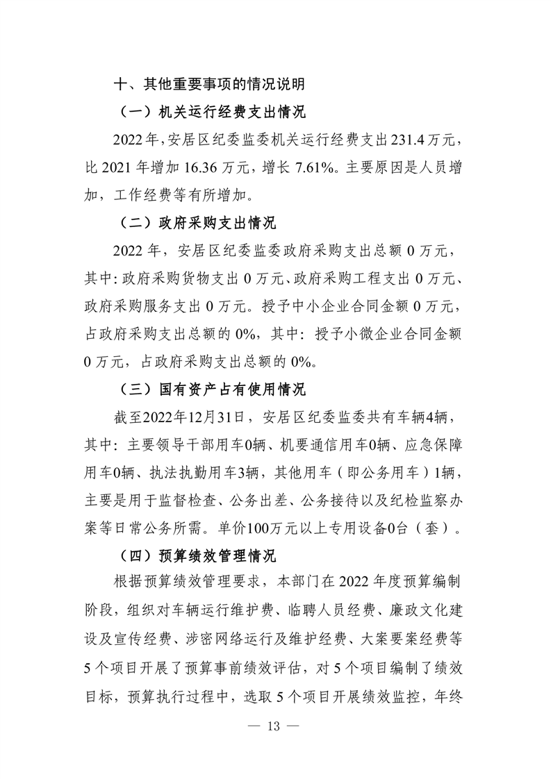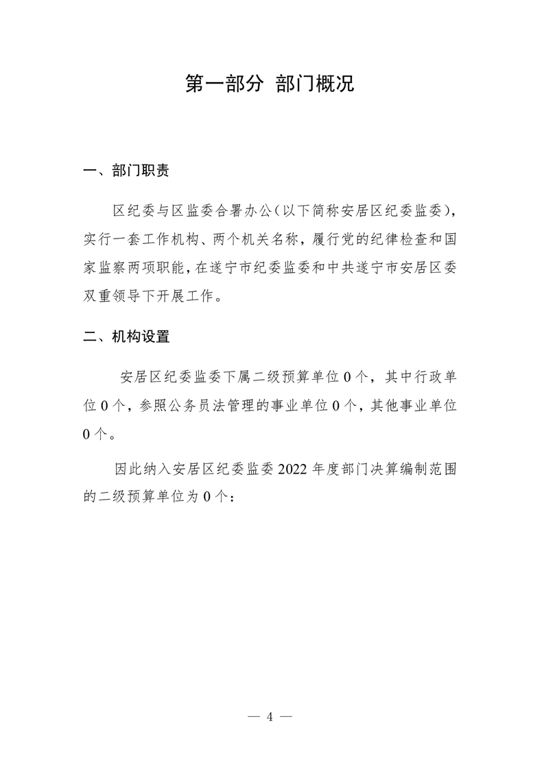 2022年度中国共产党遂宁市安居区纪律检查委员会决算公开说明