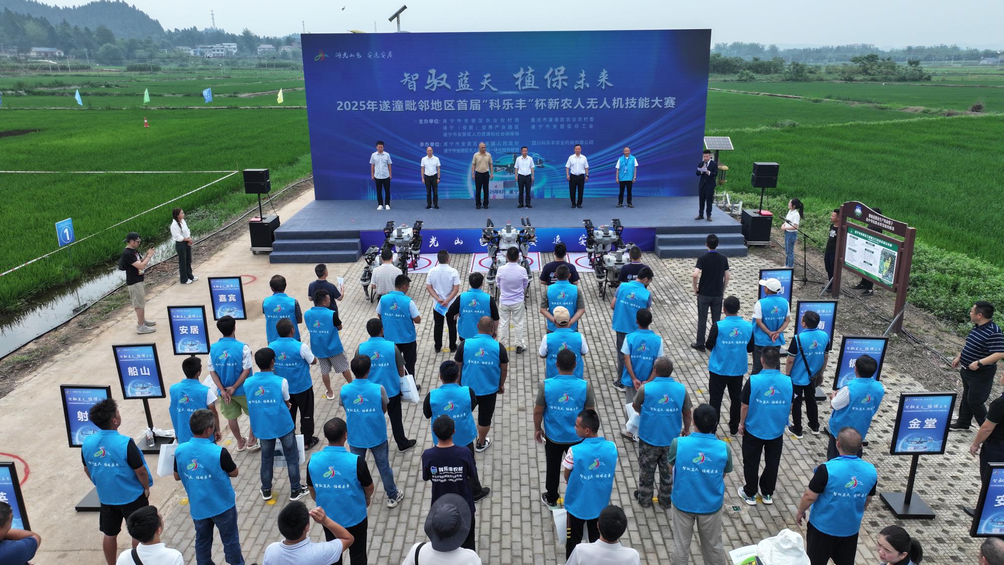 6月5日,2025年遂潼毗邻地区首届“科乐丰杯”新农人无人机技能大赛在安居区三家镇三家大米现代农业园区圆满落幕。来自潼南、安岳、金堂等遂潼毗邻地区的15支参赛队伍同场竞技,围绕无人机农用物资运输、农药喷洒、农业植保等现代农业应用技能,展开激烈角逐。这场赛事不仅是一场技能的比拼,更是低空经济赋能农业高质量发展的生动实践,充分展现了新农人运用科技手段振兴乡村的“硬核”实力。