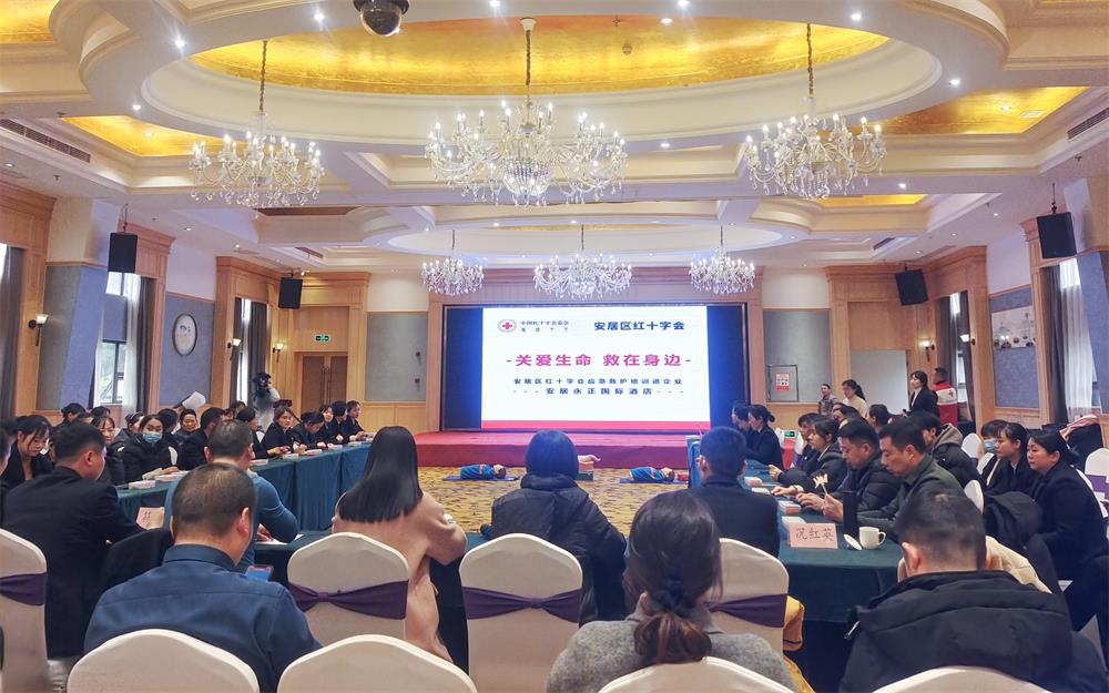 为进一步提高企业员工应对突发事件、意外伤害事故的意识和自救互救能力,1月8日,区红十字会联合区总工会开展红十字“救”在身边应急救护知识培训进企业活动。遂宁永正国际酒店80余名职工参加培训。