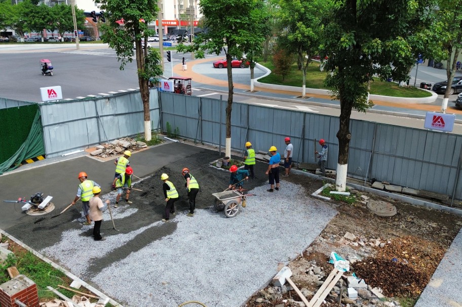 近日,小编走访了安居区多个老旧小区改造项目现场,实地探访工程最新进展。在国贸东区老旧小区改造现场,工人们正紧张有序地进行廊庭基础施工,为居民未来的休憩空间打下坚实基础。与此同时,水木青华小区改造也步入收尾阶段,工人们正在对小区内部施工区进行精细化收边收口、小区外人行道进行透水混凝土铺设作业,崭新的步道及护栏已施工完成,视觉效果获得居民连连点赞。