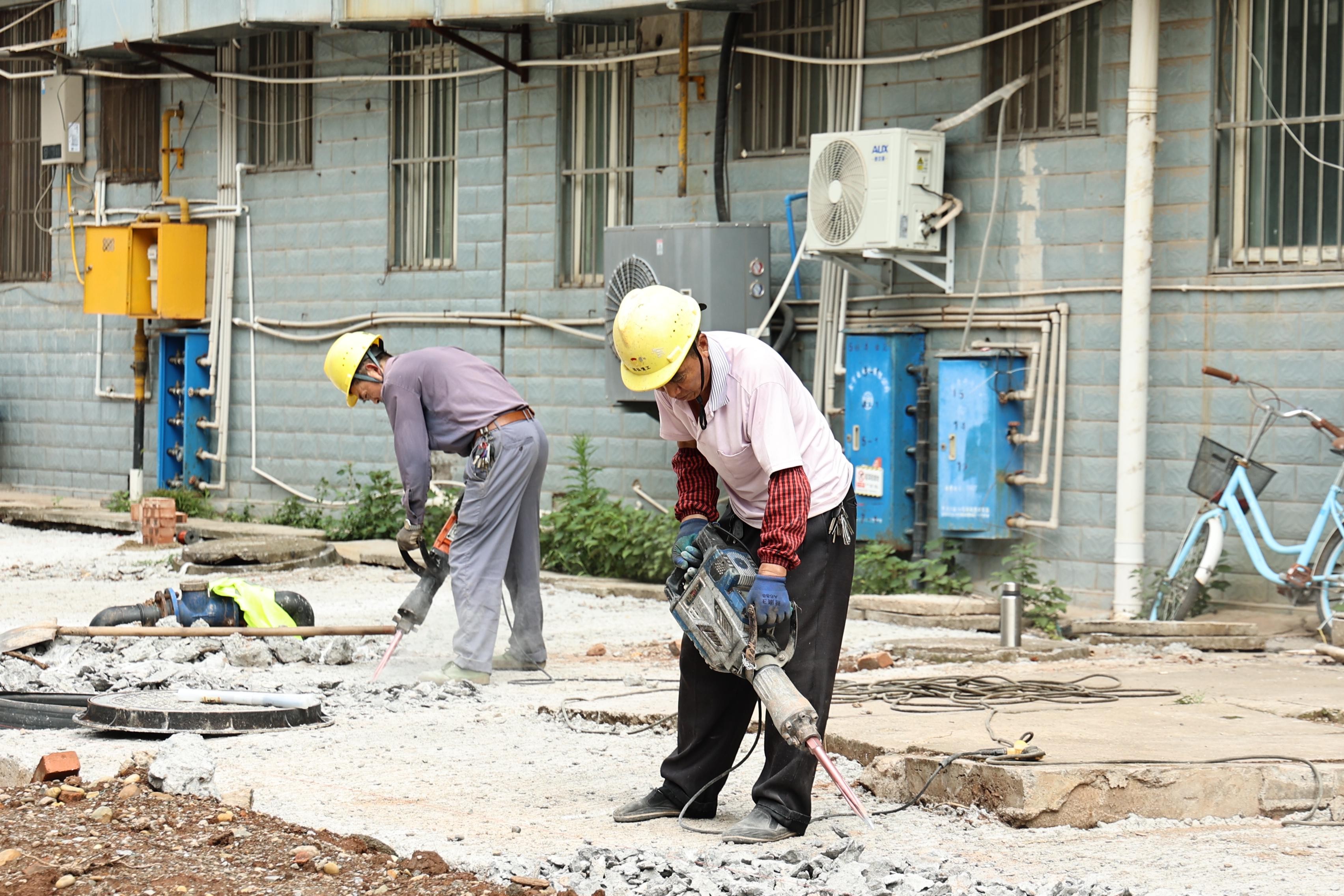 国贸东区、水木青华老旧小区改造项目均属于安居区2024年启动的老旧小区改造项目,建设内容包括:道路硬化、机动车停车位、非机动车停车棚和雨污管网分流、强弱电管网改造施工,以及对路灯监控、健身游乐设施、活动中心、门卫室及门禁系统、绿化维护等附属配套设施进行改造升级,目前总施工进度已达80%。