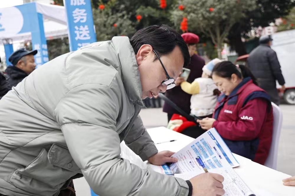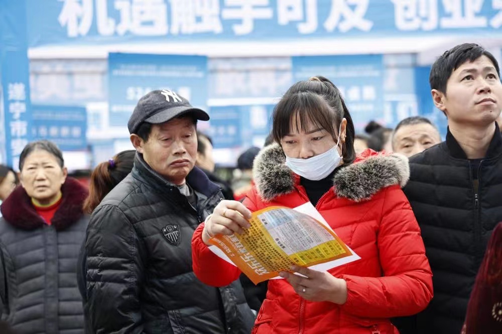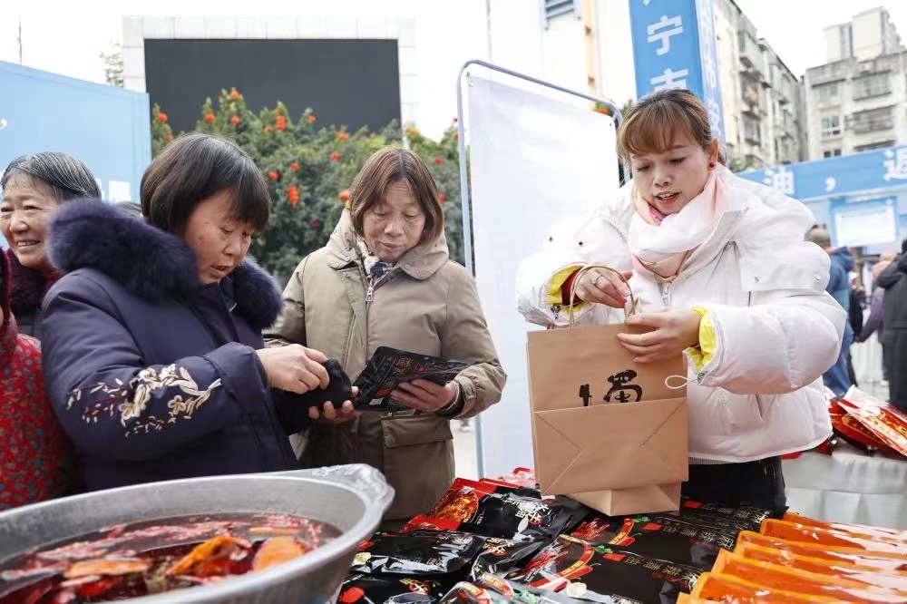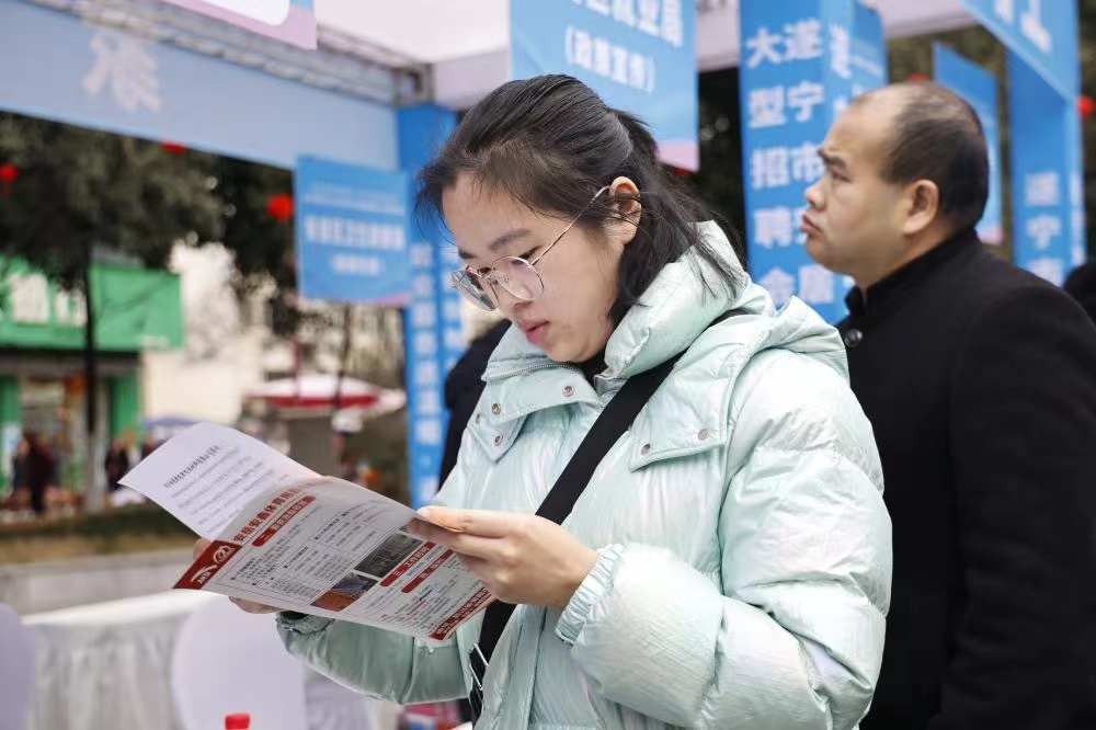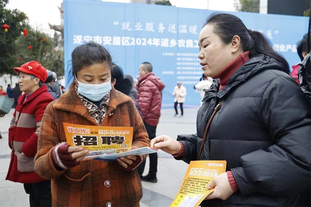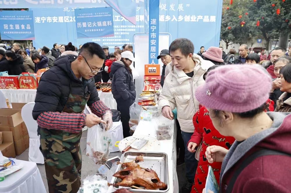 1月18日,由安居区人力资源和社会保障局、区农民工服务中心等主办的2024年返乡农民工大型招聘会暨返乡入乡创业产品展在头陀寺广场举行。