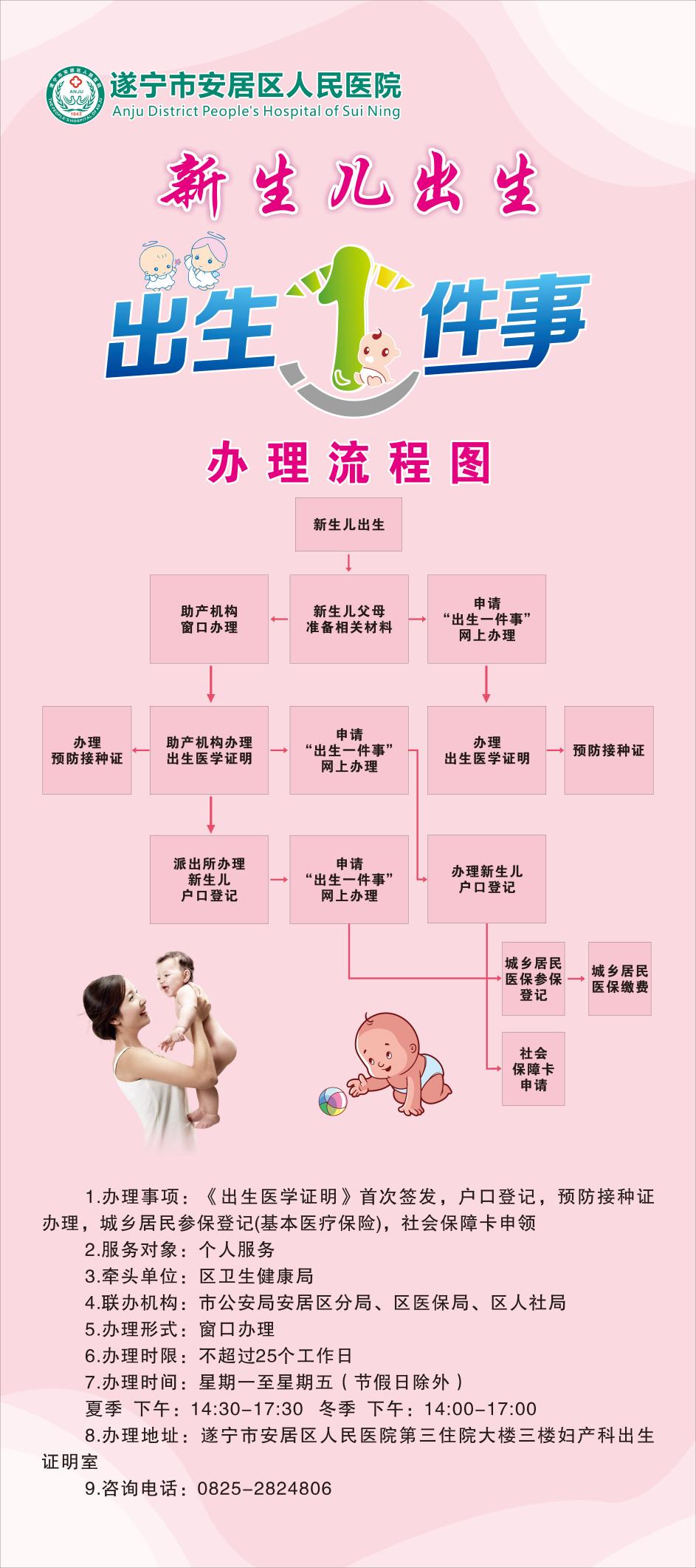 为解决新生婴儿出生后办理相关证件多处跑、多次跑等问题,今年4月以来,安居区推出“新生儿出生一件事”联办工作,实现“一次告知、一表申请、一网受理、一站服务”,最大限度便民利民。