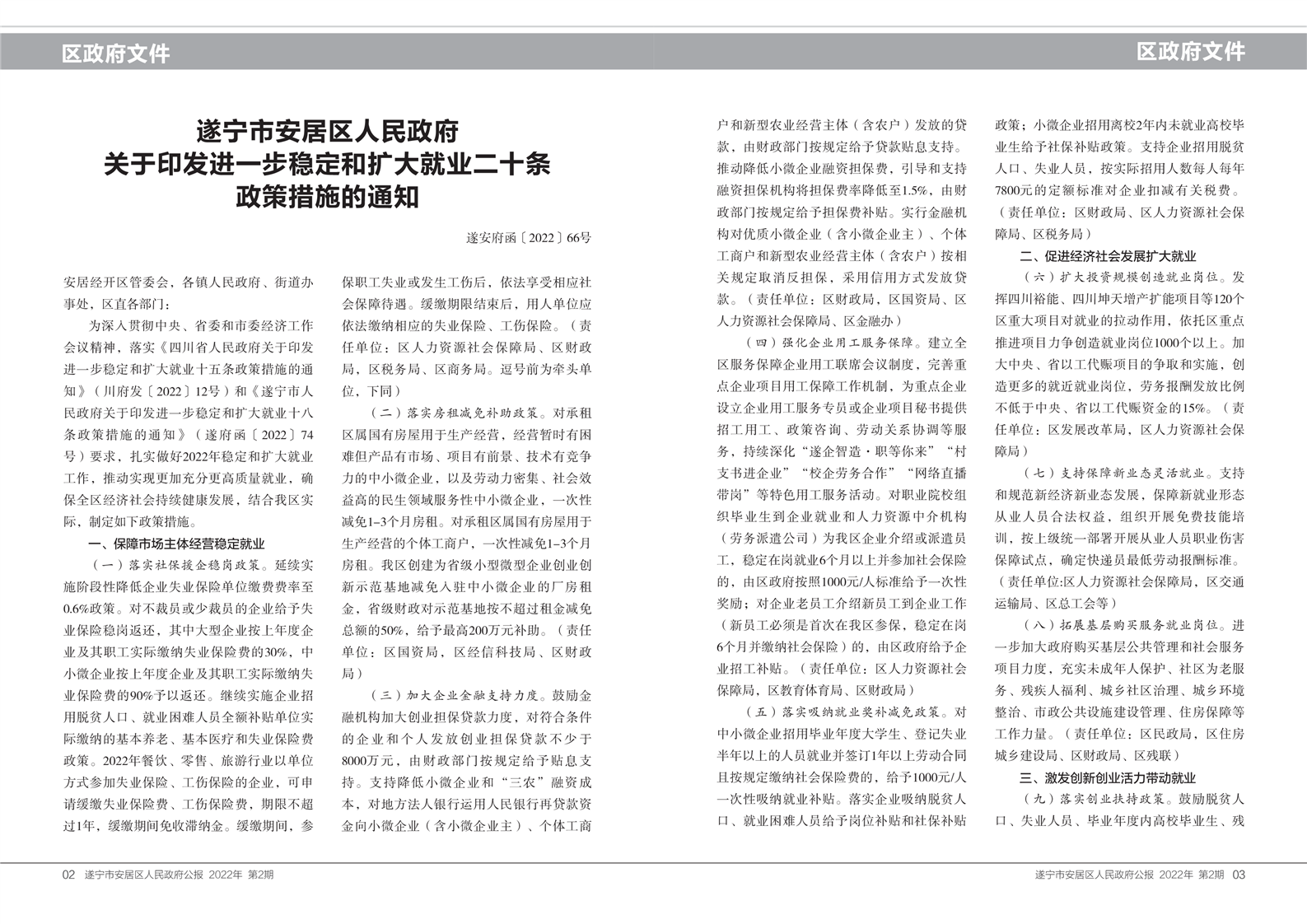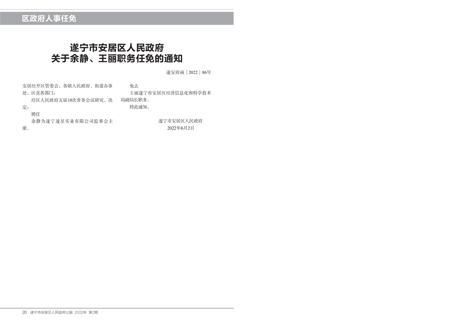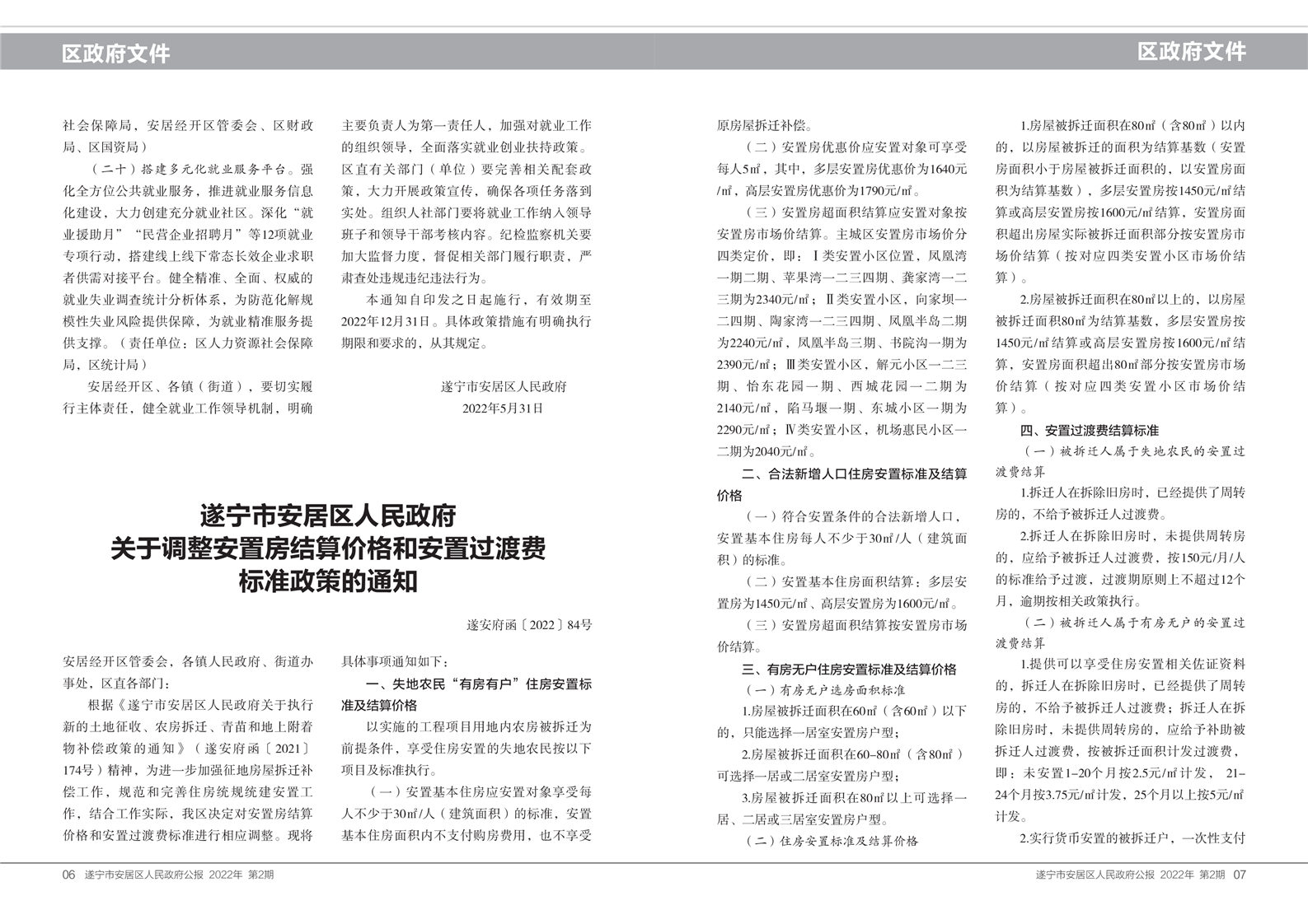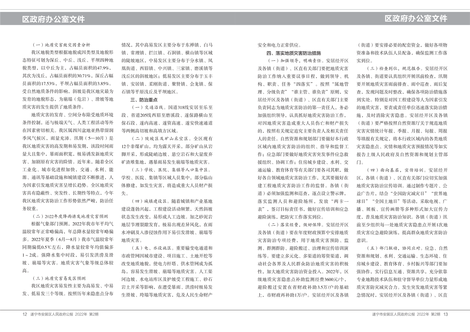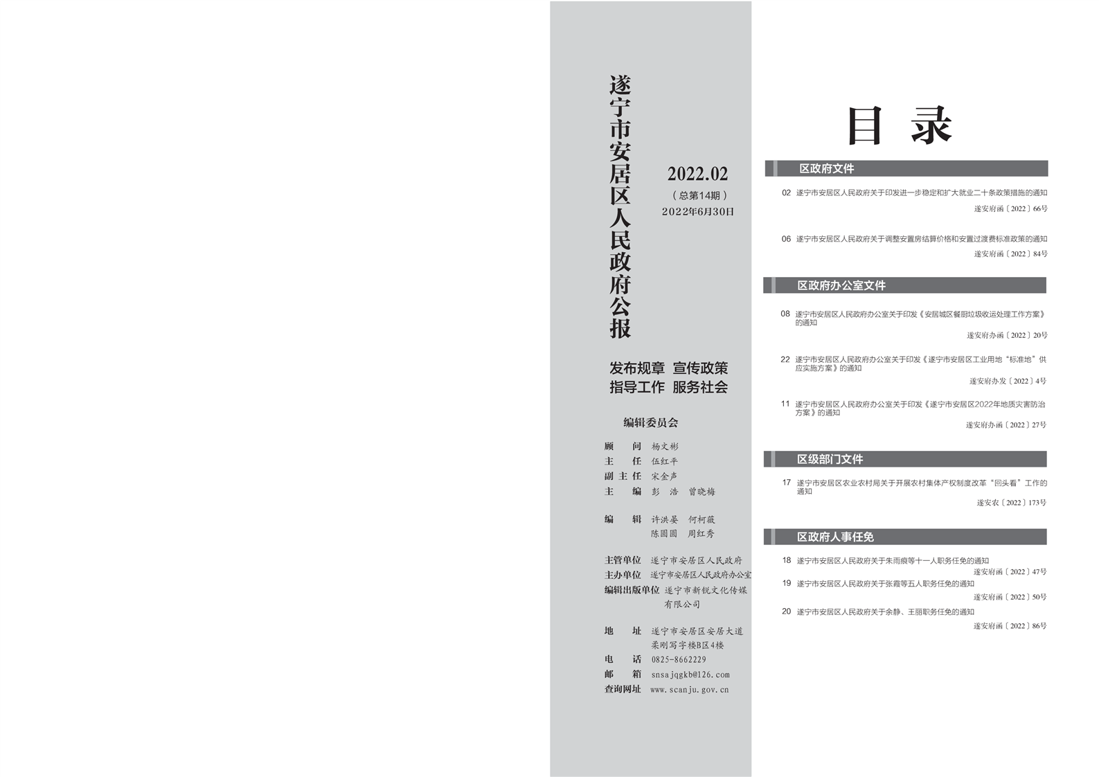 安居区人民政府公报2022年第二期