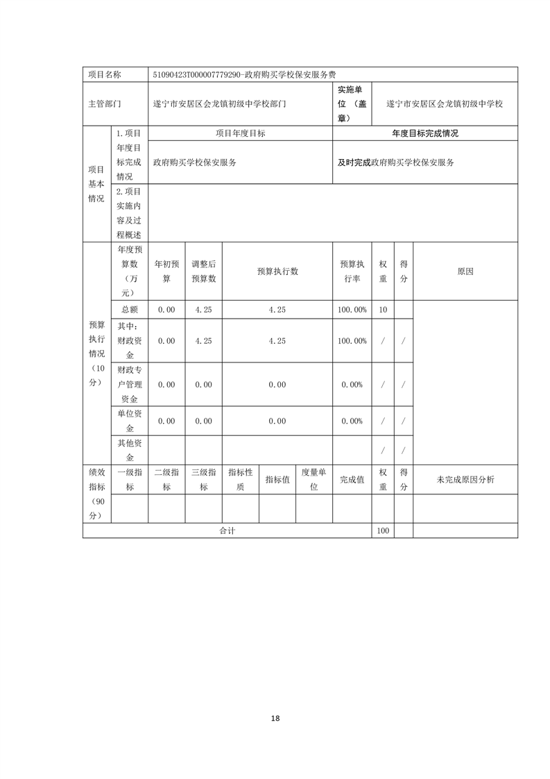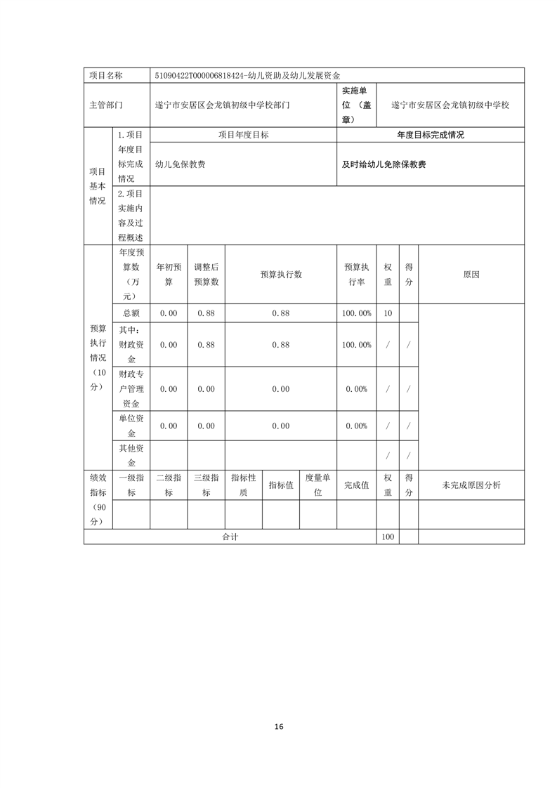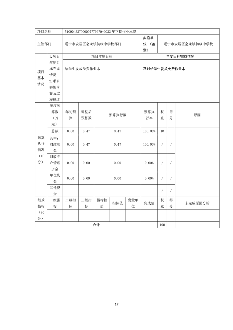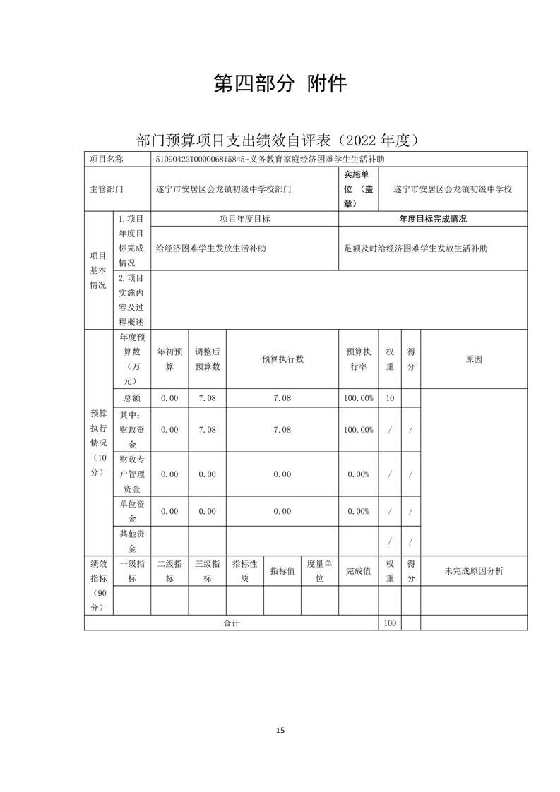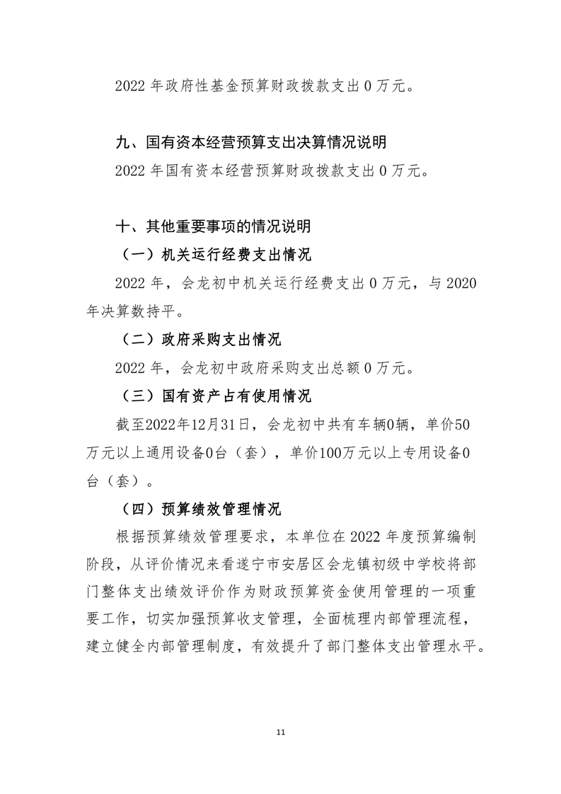 遂宁市安居区会龙镇初级中学校 决算