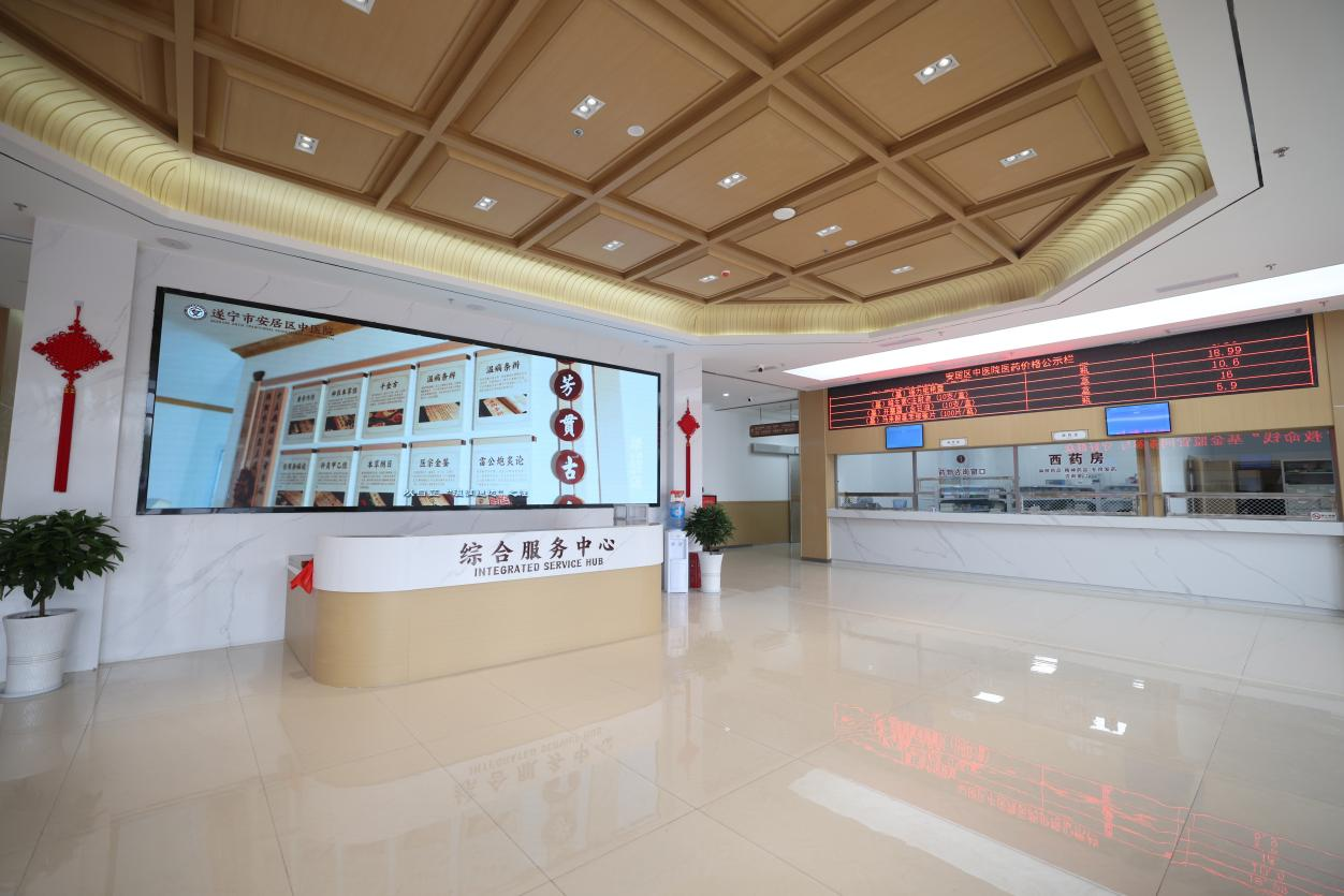 面对人口老龄化趋势,安居区以全省首批医养结合示范县创建为契机,构建起了“居家为基础、社区为依托、机构为补充、医养相融合”的服务体系。新开诊的安居区中医院(医养康复中心)毗邻安居凤凰栖景区,是安居区唯一一所以老年病、慢性病为主集医疗、康复、宁养、保健、照护、培训以及健康管理为一体的公立医院,整合了中医诊疗、康复理疗、智慧养老等多元功能,设置适老化房间100余间,配备专业医护团队,真正实现了“健康护航 老有所依”。