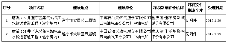 根据建设项目环境影响评价审批程序的有关规定,2019年1月29日我局受理2个建设项目环境影响评价文件。现将受理情况予以公告,如有建议意见,请于2019年2月2日前向我局提出。