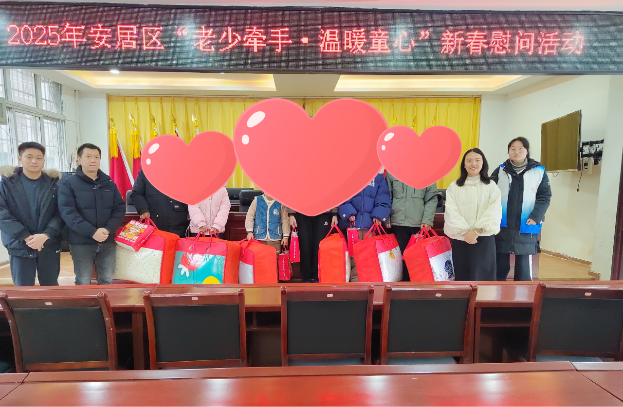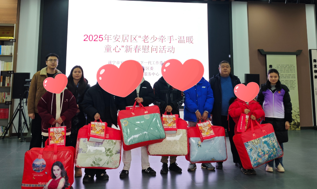 暖心暖情迎新春,走访慰问送温暖。近日,共青团安居区委联合区关工委、区总工会及区农民工服务中心开展2025年安居区“老少牵手·温暖童心”新春慰问活动,为困境青少年、童心港湾(童伴之家)留守儿童、基层一线青年职工、优秀青年志愿者等送上春节祝福和暖冬慰问物资。