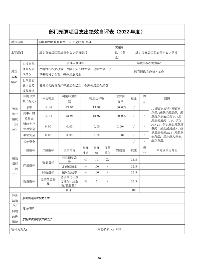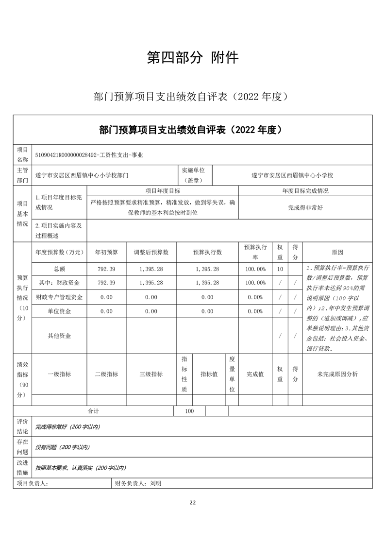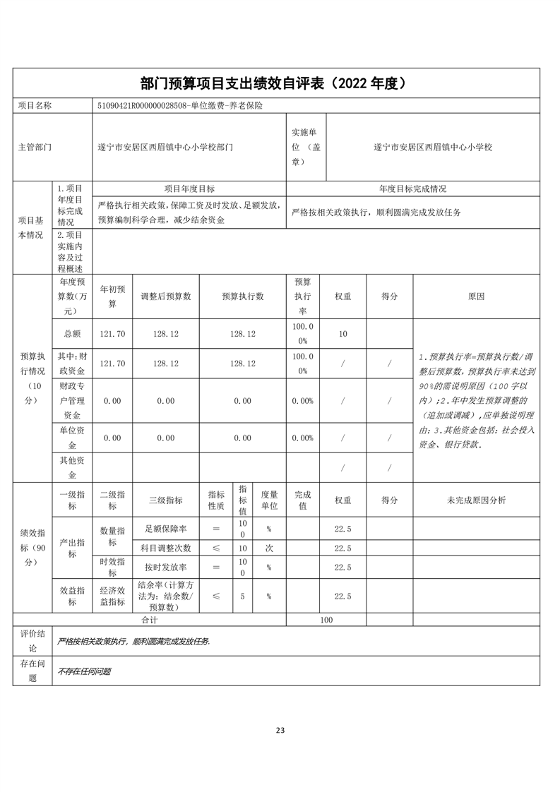 遂宁市安居区西眉镇中心小学校2022年单位决算