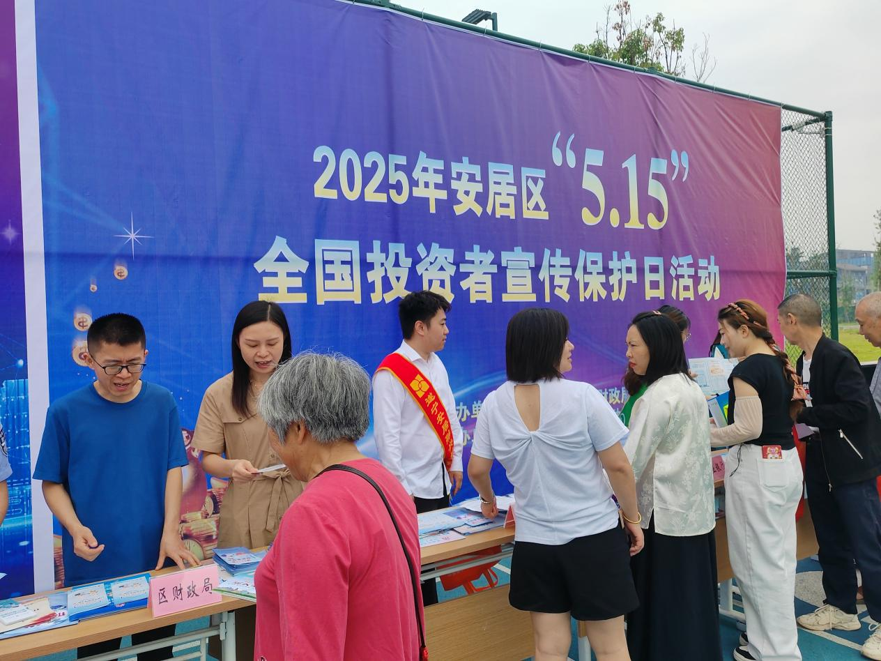 5月15日,区财政局、市公安局安居区分局联合开展2025年“5.15”全国投资者宣传保护日和打击防范经济犯罪宣传活动,为群众筑起金融风险防护网。