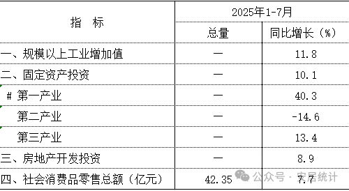 2025年1-7月安居区主要经济指标