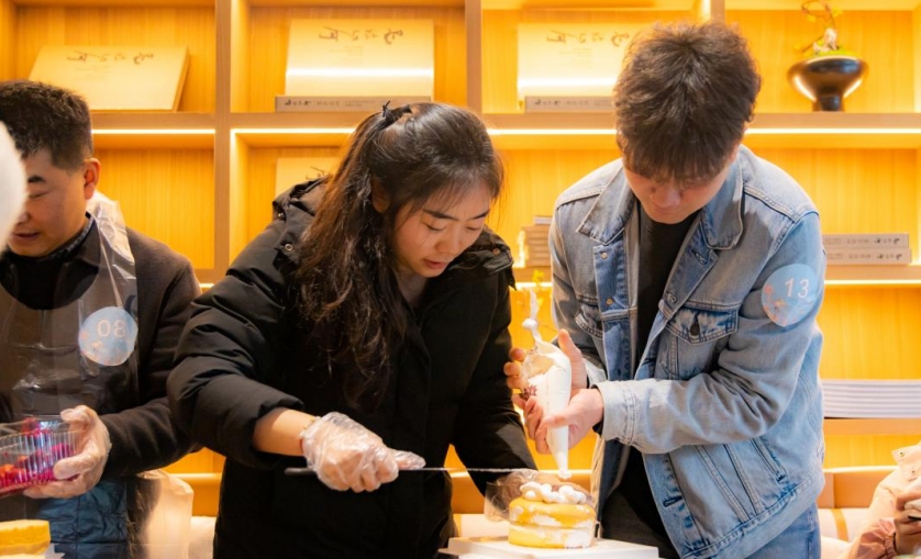 随后,“趣味游戏互动”环节点燃全场热情,团队协作的“不倒森林”、默契考验的“锦绣添香”及创意十足的“气球传杯子”,体验蛋糕DIY手工活动,不仅考验团队协作能力,还为青年们创造了更多互动机会。大家积极参与,在欢声笑语中拉近了距离。